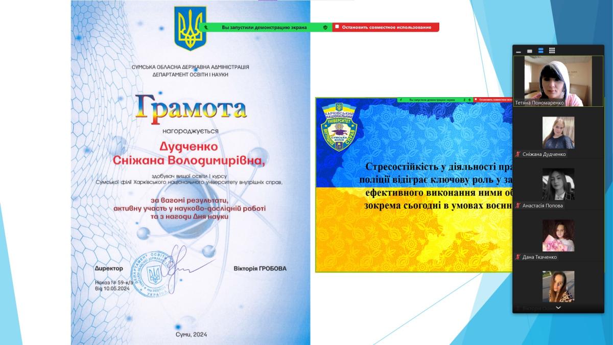 Пишаємося молодими науковцями Сумської філії ХНУВС, примножуємо науковий потенціал, віримо у Перемогу та майбутній розквіт України!