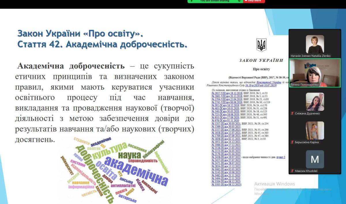 Учасники засідання акцентували увагу на важливості та неухильному дотриманні принципів академічної доброчесності, раціональності, гласності, академічної свободи на шляху до Перемоги та інтеграції України в європейський освітній простір.