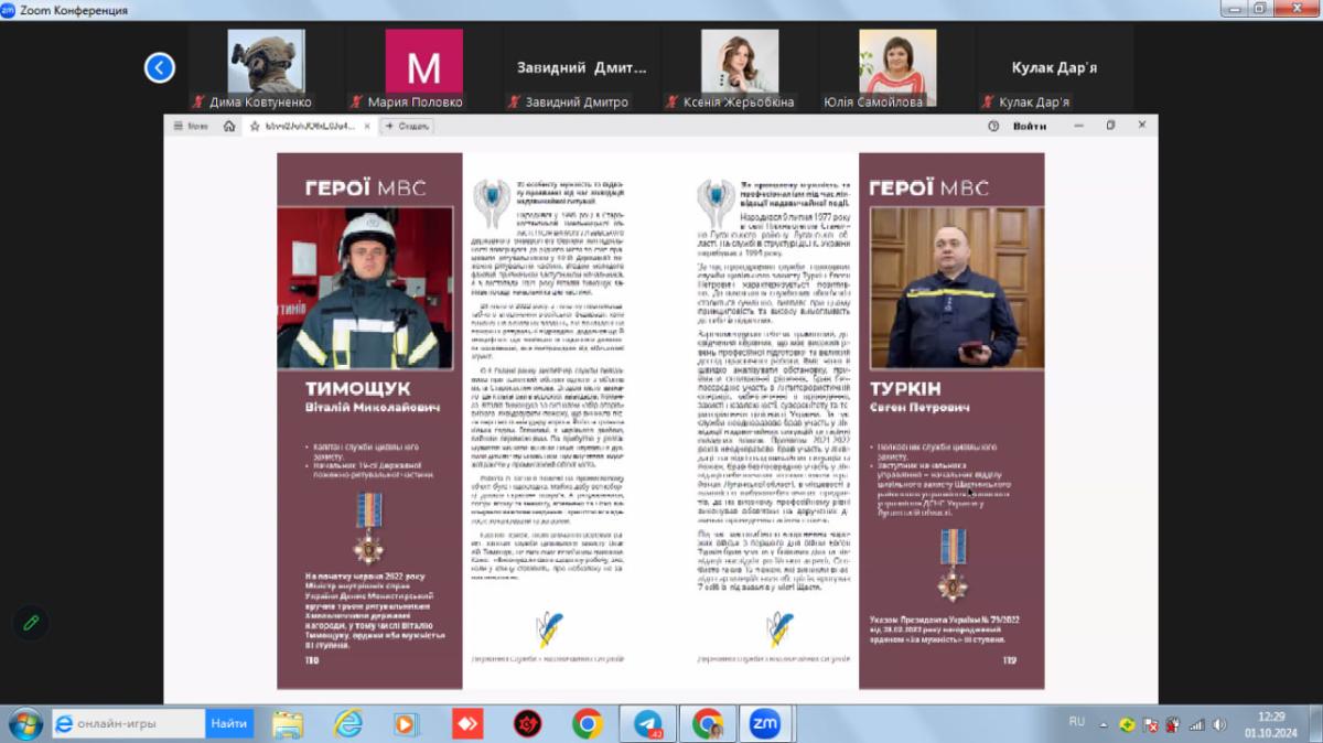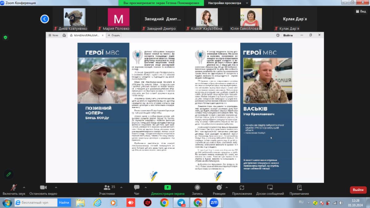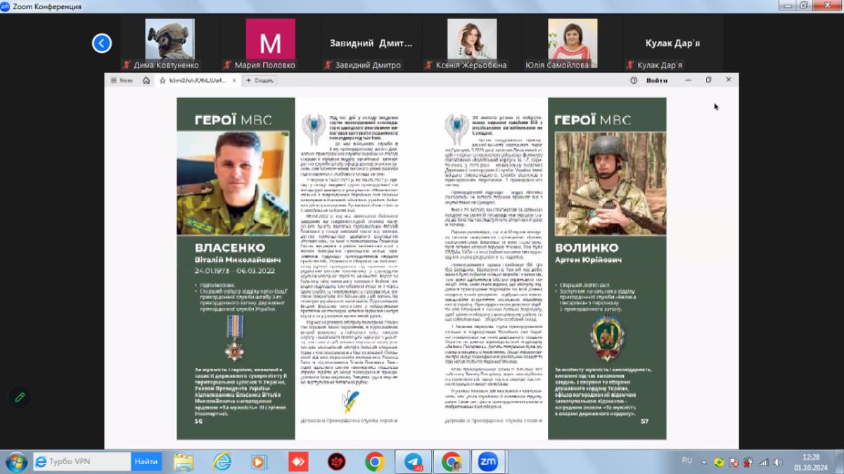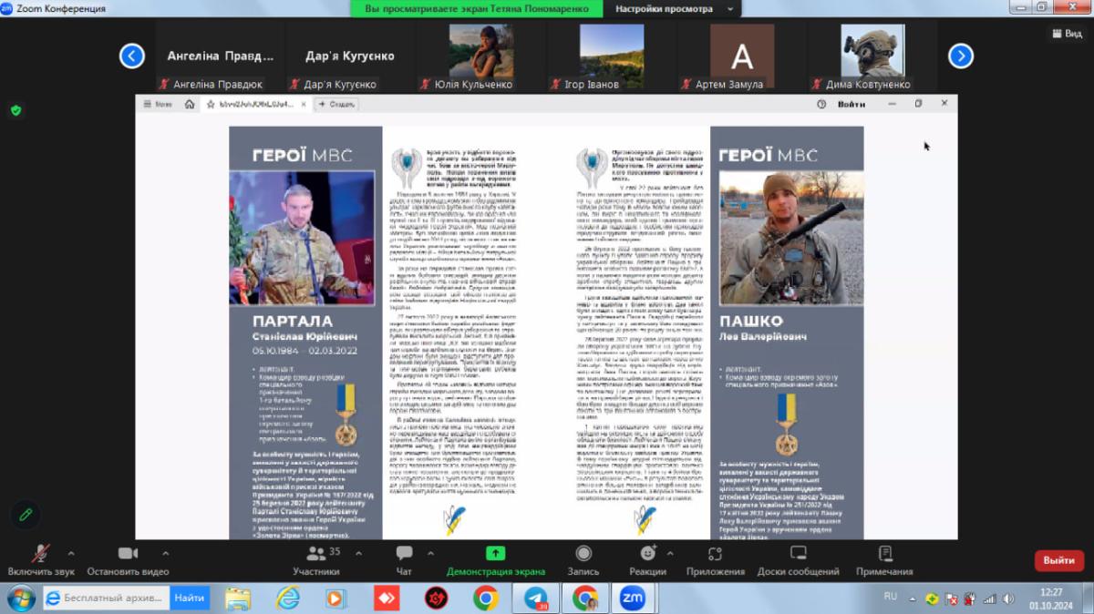 Щодень війни забирає життя наших захисників, кожен із яких для нас є героєм. При цьому події настільки швидко розвиваються, що з часом втрачається пам'ять про те, що відбувалося день, тиждень, місяць тому. Саме тому під час освітнього заходу було згадано про проєкт команди «Герої МВС», які працювали увесь час для того, щоб повернути території, або забезпечують порядок на звільнених територіях чи на тих, які межують із зоною бойових дій.