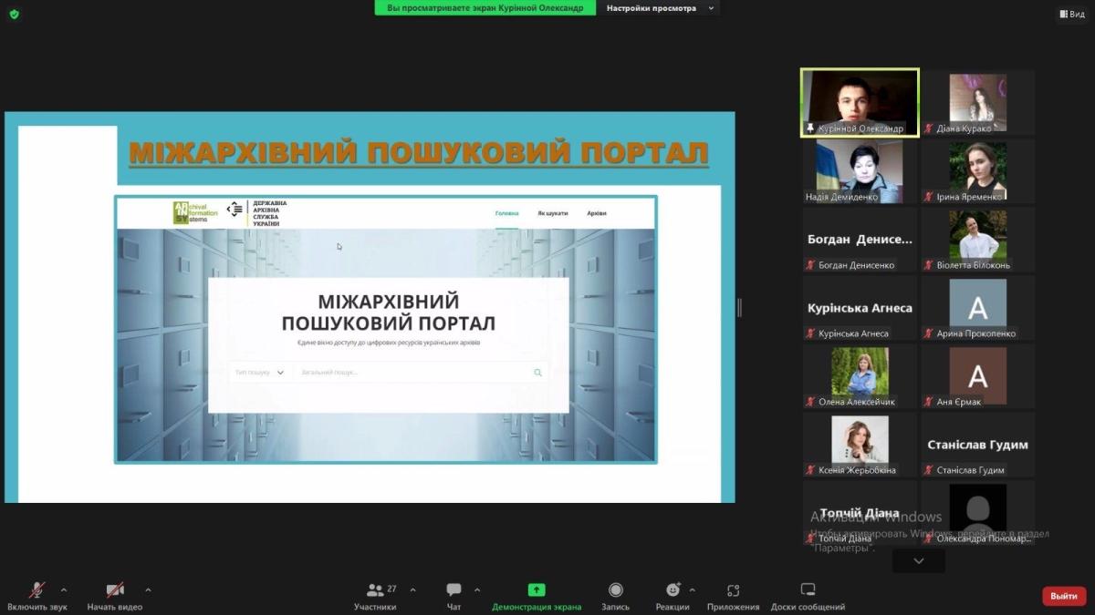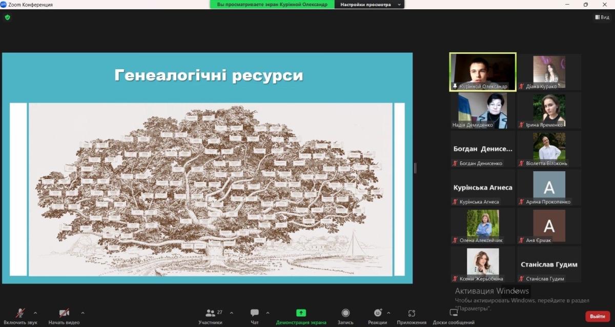 Олександр Курінной надав посилання на цінні електронні ресурси, які останнім часом користуються підвищеним попитом не лише серед істориків, а і пересічних громадян : метричні книги https: // www.FamilySearch та сайт з вивчення генеалогічного дерева https: // www.myheritage.com (MyHeritage).