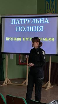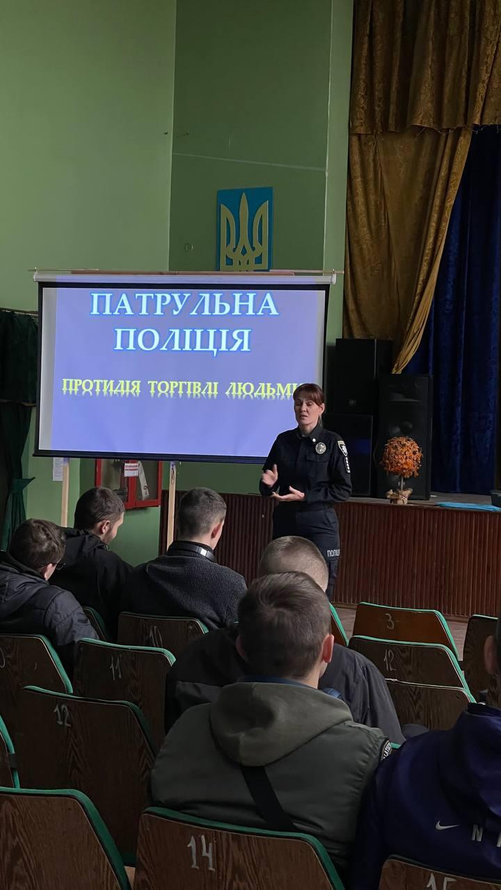 Євгенія Анатоліївна ознайомила хлопців та дівчат із глобальною проблемою, яка торкається мільйонів людей у всьому світі та розповіла як діяти в ситуації, коли виникає підозра на торгівлю людьми, та як убезпечити себе та своїх близьких від ризиків експлуатації,