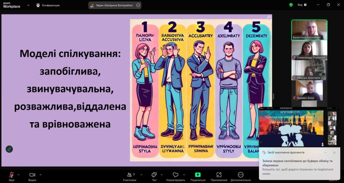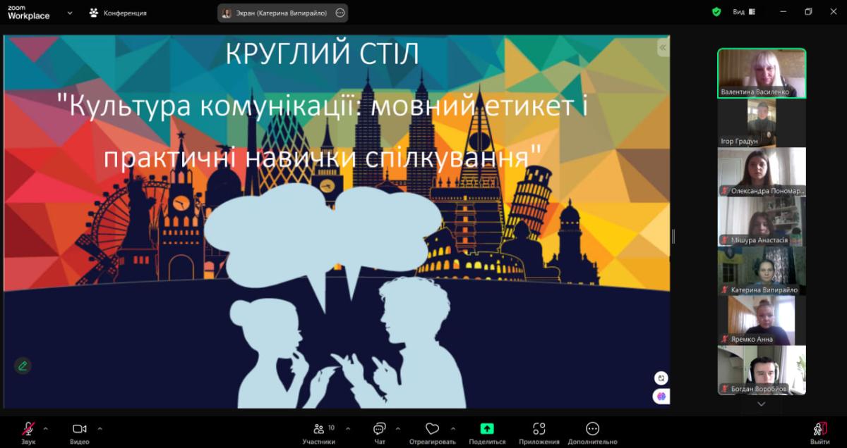 Під час круглого столу учасники мали можливість обговорити актуальні питання, пов'язані з культурою мовлення, уникненням конфліктів у спілкуванні та правилам використанням мовного етикету в різних життєвих ситуаціях.