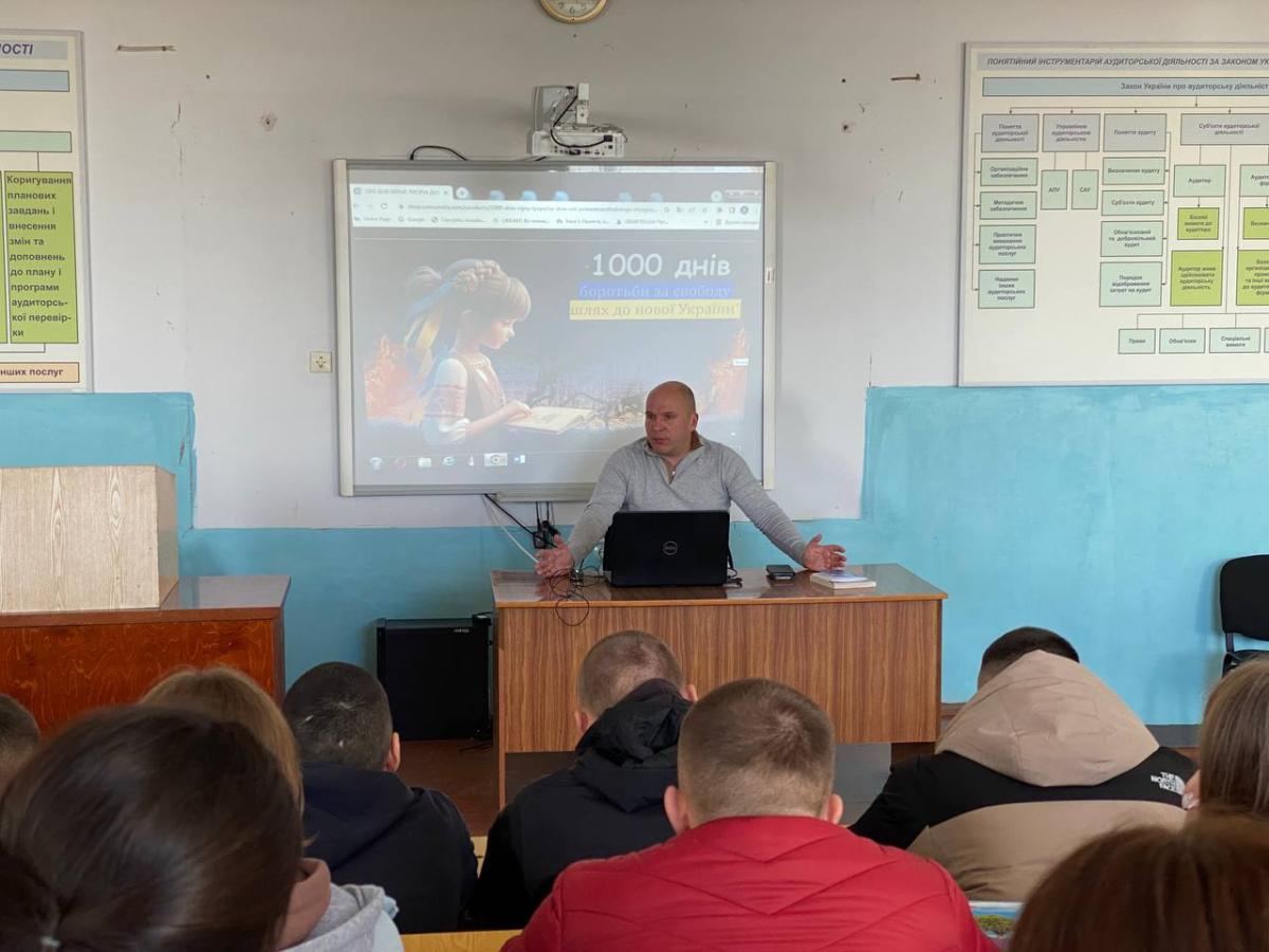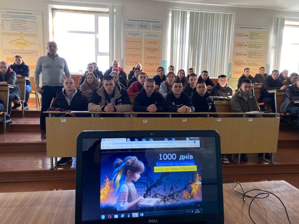 Старшим викладачем кафедри юридичних дисциплін Сумської філії ХНУВС Андрієм Сядристим разом у курсантами групи СФ-23-1Пд проведено кураторську годину, присвячену 1000 днів від початку війни.