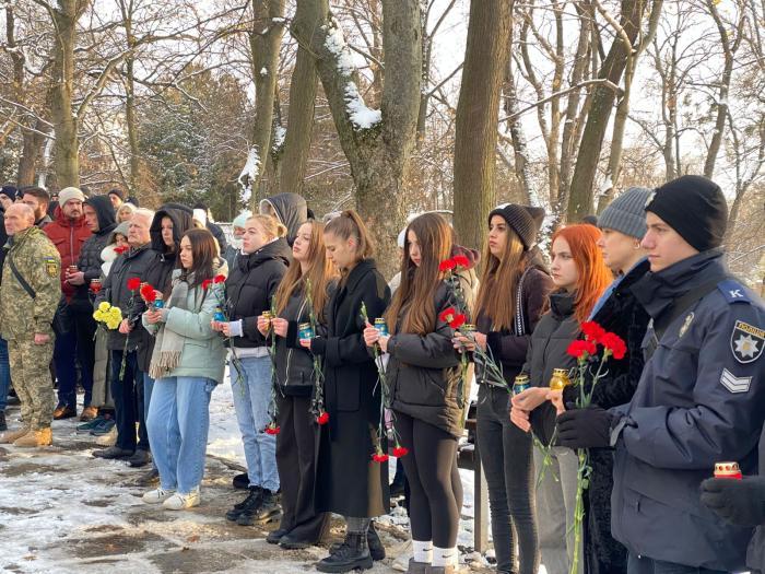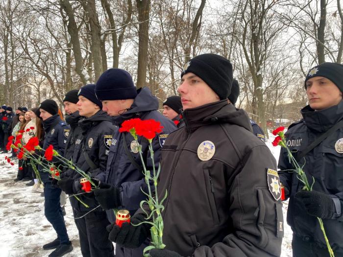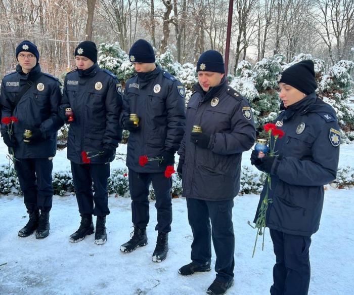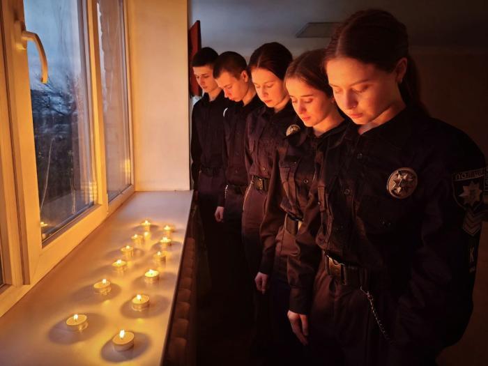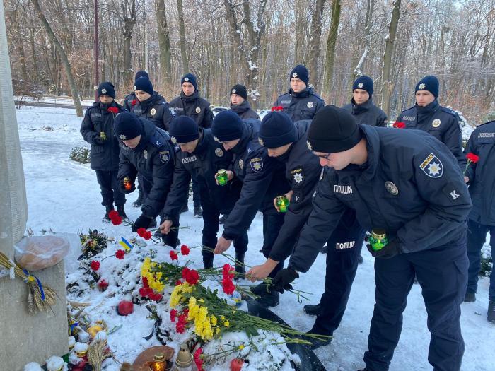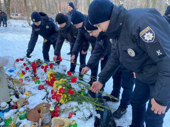 Здобувачі вищої освіти, працівники та керівництво Харківського національного університету внутрішніх справ поклали квіти до місць пам’яті жертв Голодомору і запалили свічки, адже кожен вогник – це вияв нашої скорботи, пам’яті та віри в майбутню неминучу Перемогу над агресором.