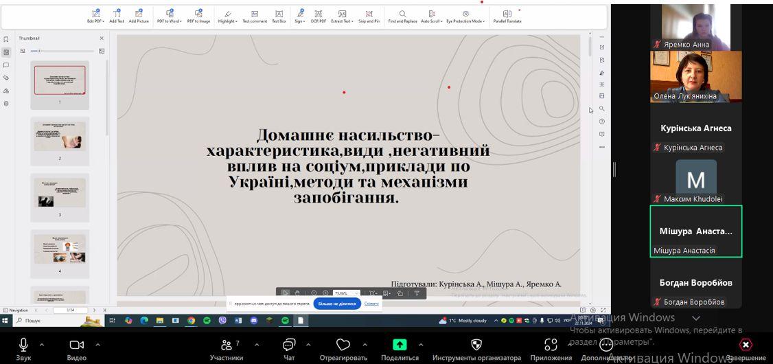 Для закріплення знань з інструментів запобігання домашньому насильству Олена Лук’янихіна запропонувала студентам опанувати курс «Онлайн-інструменти протидії домашньому насильству» на платформі «Дія. Цифрова освіта».
