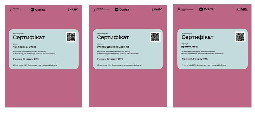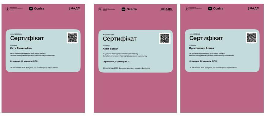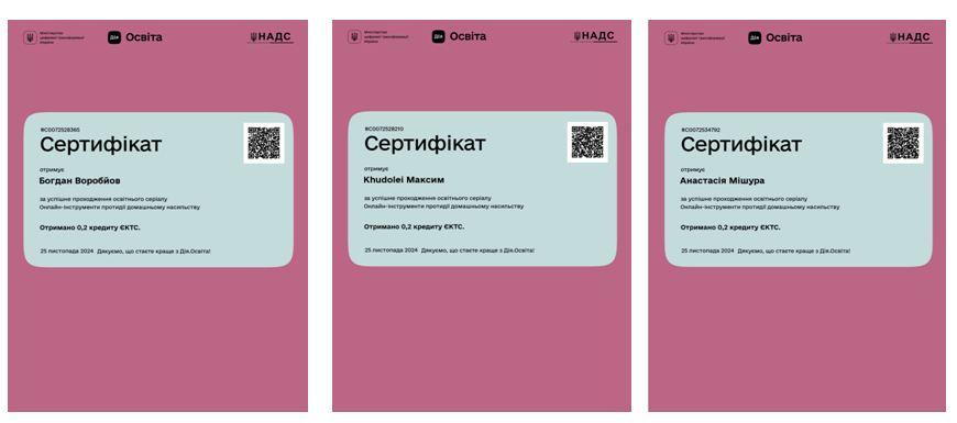 За результатами успішно складених тестів викладач і здобувачі отримали сертифікати (тривалість 2години/ 0,2 кредиту EKTC).