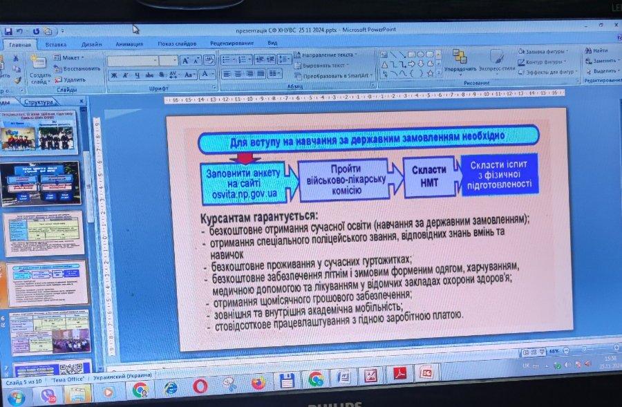 Старший викладач кафедри Микола Лук’янов приділив увагу перевагам вступу та навчання у Сумській філії ХНУВС за держзамовленням на спеціальності 081 Право і 262 Правоохоронна діяльність, що відкриває беззаперечні перспективи працевлаштування.
