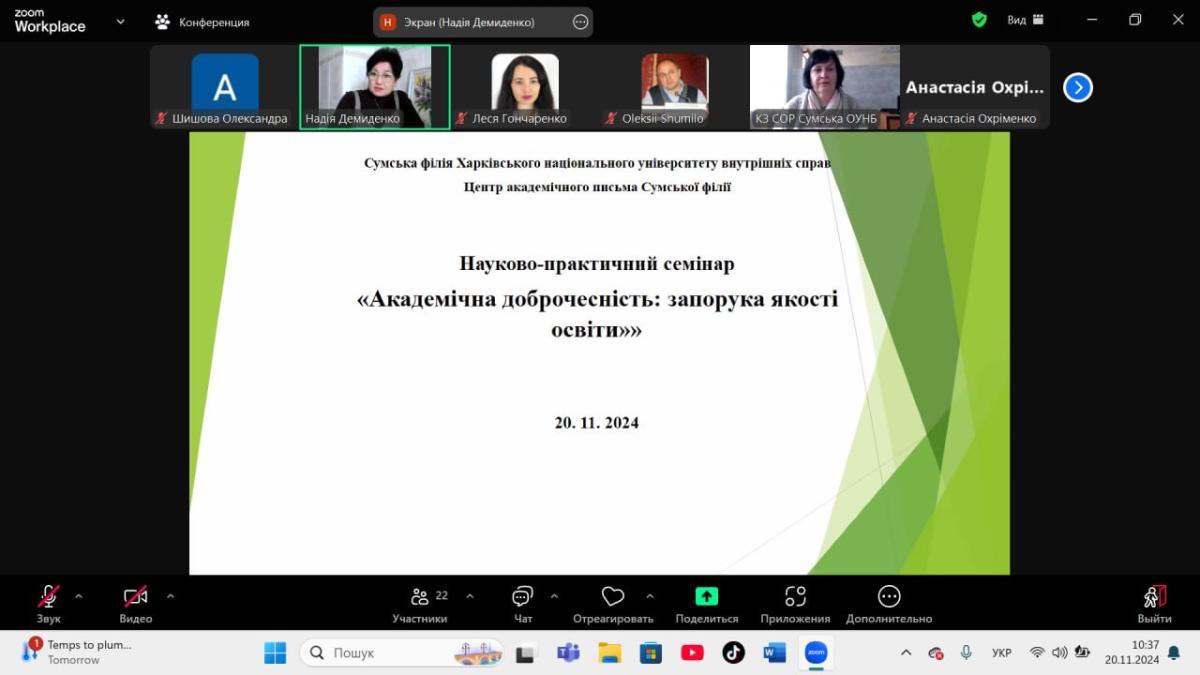 Доцент кафедри гуманітарних дисциплін Надія Демиденко, керівник Центру академічного письма Сумської філії ХНУВС, зауваживши, що серед найголовніших причин плагіату здобувачів вищої освіти є відсутність у них навичок роботи з першоджерелами, надала розлогі методичні рекомендації щодо правильного опрацювання першоджерел, оформлення посилань на них у власних наукових дослідженнях – курсових роботах, доповідях наукових конференцій тощо.