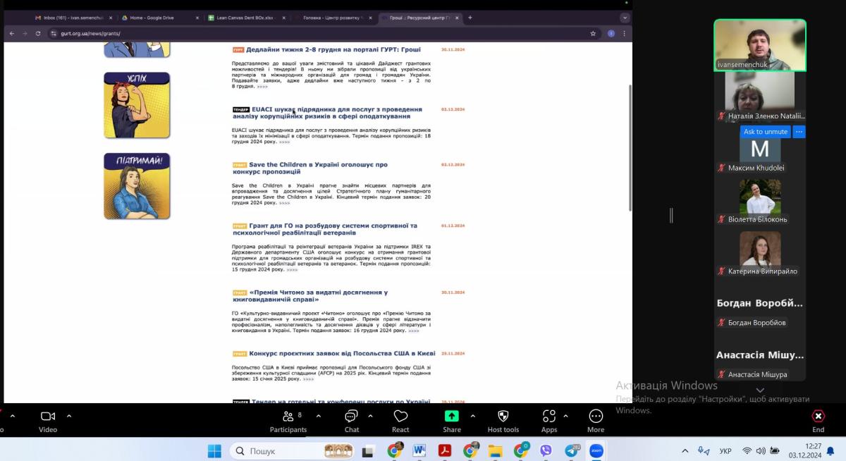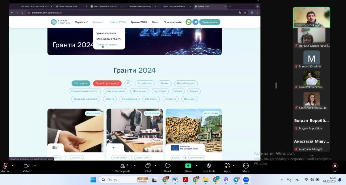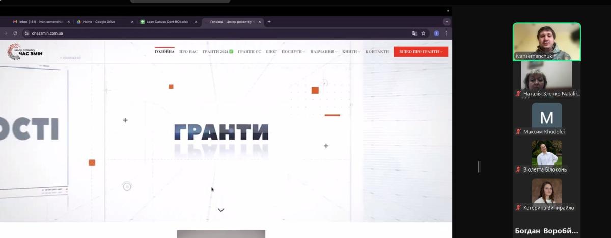 У межах вивчення навчальної дисципліни «Вступ до правових досліджень» доцентом кафедри гуманітарних дисциплін Сумської філії ХНУВС Наталією Зленко було організовано та проведено бінарне семінарське заняття у форматі онлайн-зустрічі з елементами панельного обговорення на тему «Основи грантрайтингу та управління науковими проєктами в публічній сфері» для здобувачів вищої освіти 1-го курсу спеціальності 081 «Право» за участі експерта із залучення грантових ресурсів, менеджера з розвитку бізнесу, співвласника компанії Brama Partners (м. Київ) – Івана Семенчука.