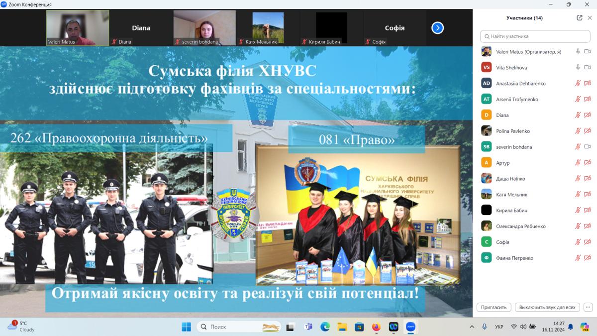 Наприкінці зустрічі майбутнім абітурієнтам була надана контактна інформація приймальної комісії ХНУВС та Сумської філії ХНУВС.