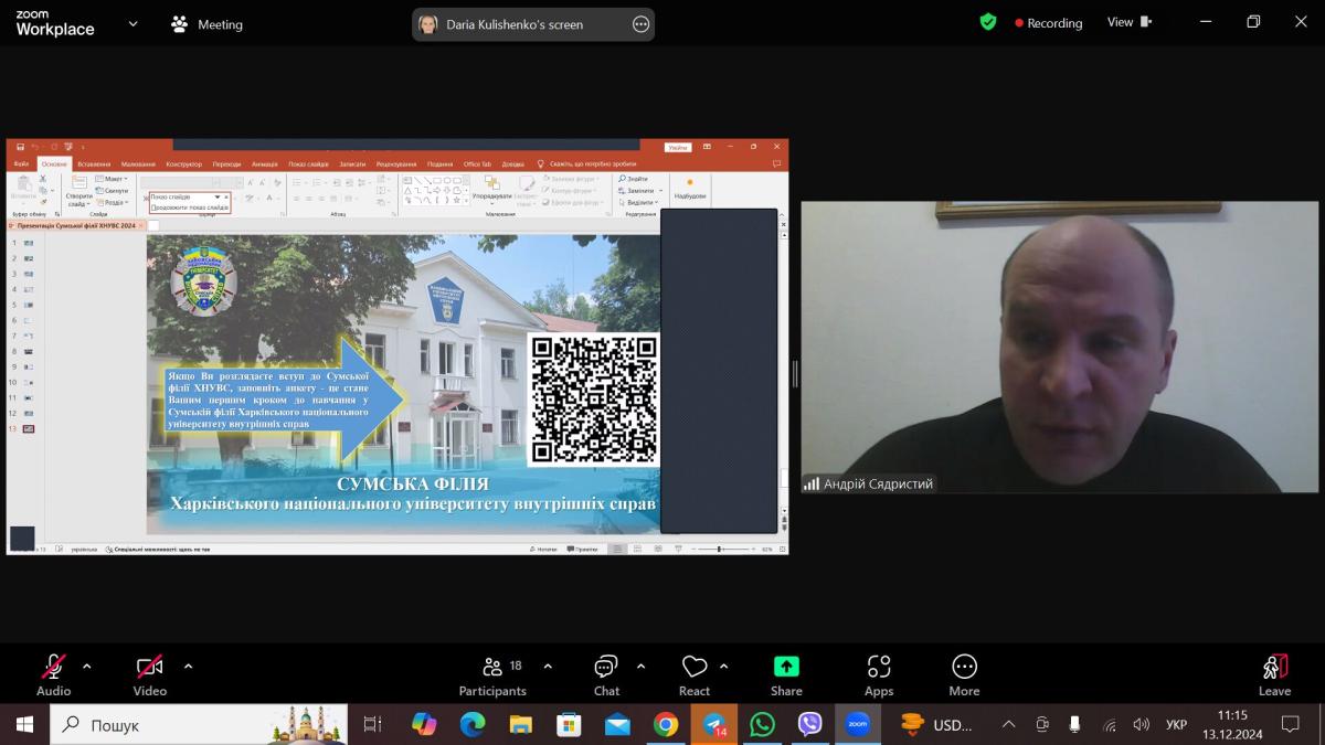 Під час зустрічі представники Сумської філії ХНУВС детально розповіли про умови вступу до Харківського національного університету внутрішніх справ, особливості навчання, перспективи професійного розвитку та кар’єрного зростання у правоохоронних органах.