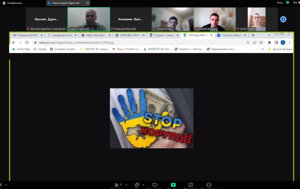 Ця тема досить зацікавила здобувачів вищої освіти, відбулася дискусія з врахуванням проблем сьогодення в суспільстві, а також було проаналізовано чинне антикорупційне законодавство України.