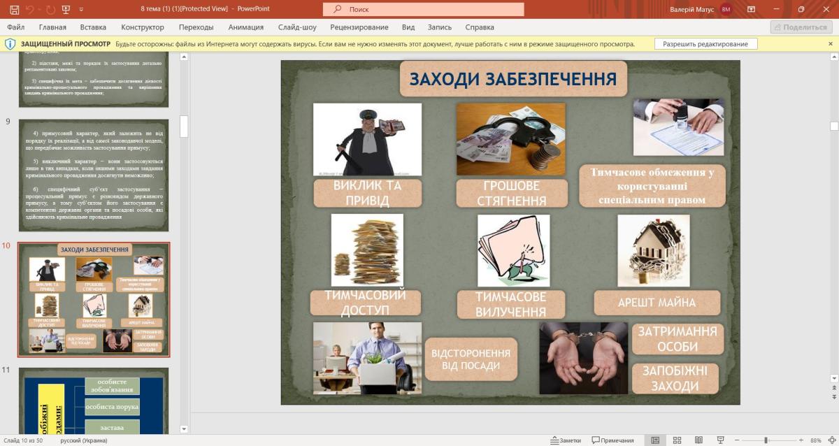 Спікер заняття поділився прикладами розгляду кримінальних проваджень щодо обрання запобіжних заходів, розказав приклади із судової практики.