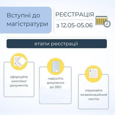 До уваги вступників до магістратури! З 12 травня розпочато реєстрацію для складання єдиного вступного іспиту з іноземної мови та єдиного фахового вступного випробування (ЗНО). Реєстрація триватиме до 05 червня 2020 року.