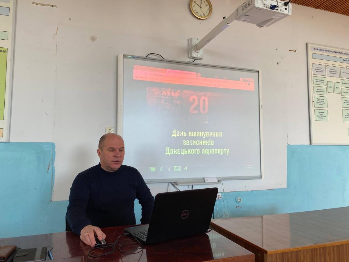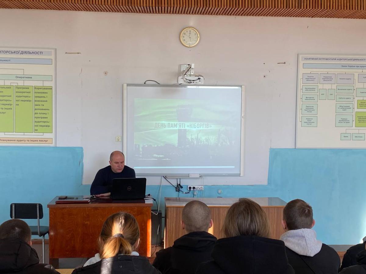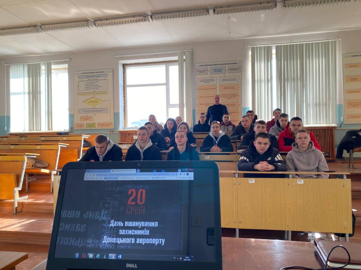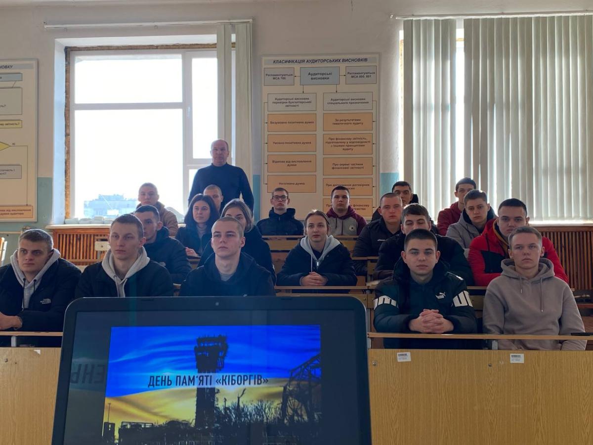 Під час кураторської години старший викладач кафедри юридичних дисциплін Андрій Сядристий розповів курсантам групи СФ-23-1 Пд Сумської філії ХНУВС про подвиг цих воїнів, які, незважаючи на всі труднощі, вистояли, демонструючи справжню відданість Батьківщині. Важливо, щоб молоде покоління, зокрема курсанти, які готуються до служби в правоохоронних органах, розуміли ціну миру і були готові до захисту державних інтересів. Захисники Донецького аеропорту стали прикладом для наслідування, і їхній подвиг нагадує нам про необхідність берегти незалежність України. Зокрема, куратор звернув увагу на життєвий шлях одного з «кіборгів» - медика Ігоря Зінича, який рятував бійців в Донецькому аеропорту і про якого розповідали майже всі «кіборги», які вижили. Більшість з них були поранені. Вони згадували, що залишилися живі завдяки 26-річному фельдшеру Ігорю з позивним «Псих» (чому саме «Псих», бо Ігор не носив ані каску, ані бронежилет, цей відчайдушний хлопець нічого не боявся). Ігор не був хірургом, але на війні навчився робити найскладніші операції. Його професіоналізм вразив навіть зарубіжних лікарів, які вже в Києві лікували врятованих Ігорем на фронті бійців. Ігор загинув під час однієї із атак ворога в Донецькому аеропорту, 19 лютого 2015 року Ігор Зінич був похований на кладовищі селища Рокитне Київської області, звідки був родом. 14 жовтня 2015 року Зіничу Ігорю Вікторовичу посмертно присвоєно звання Герой України з удостоєнням ордена «Золота Зірка».