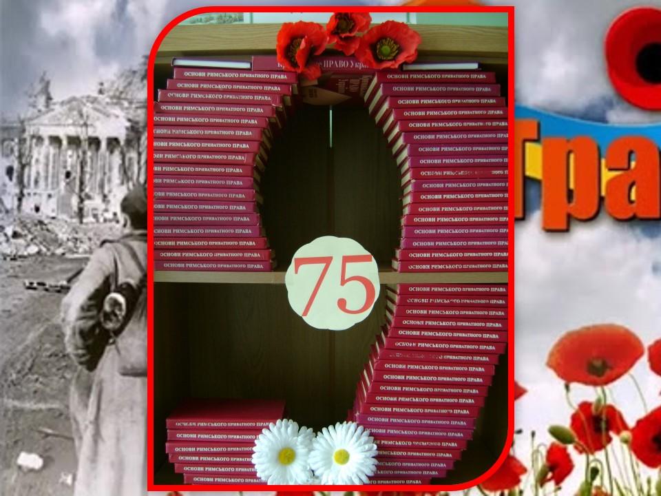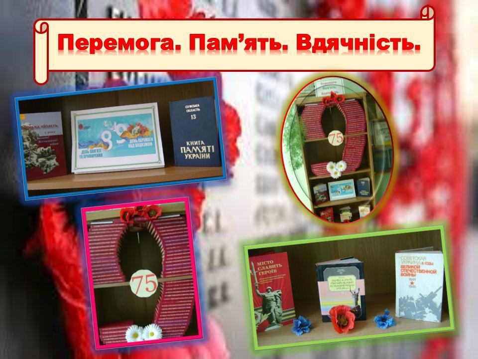 А ми, бібліотекарі могутньою силою слова, безмежною силою інформації доносимо до умів та сердець наших відвідувачів книгозбірні величний подвиг українського народу у Великій Вітчизняній війні та визвольній місії народів Європи.