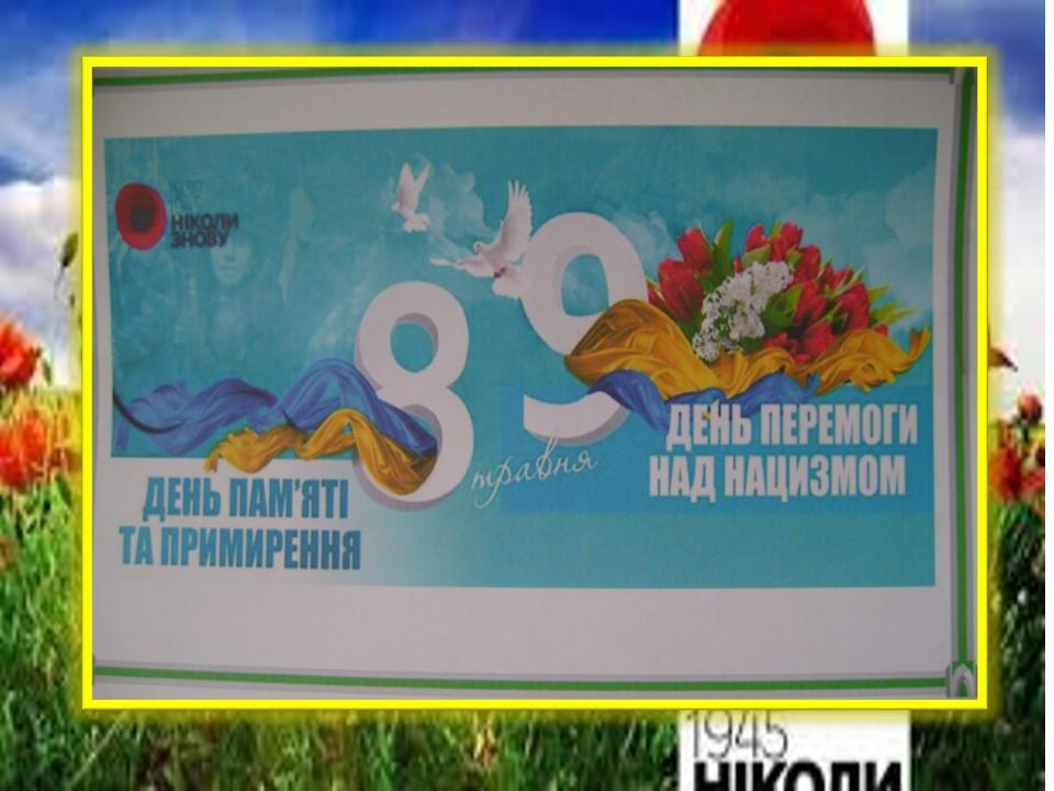 З цвітінням садів, буянням квітів і дерев, золотом і сріблом бойових нагород до нас приходить Перемога. Свято Перемоги – особливе свято – величне, вистраждане… Подвиг героїв-переможців у цій жахливій війні непідвладний часу, як й наша щира та безмежна вдячність їм – людям, які виявили нездоланну мужність та незламність духу в боях за рідну землю та свободу країн Європи.