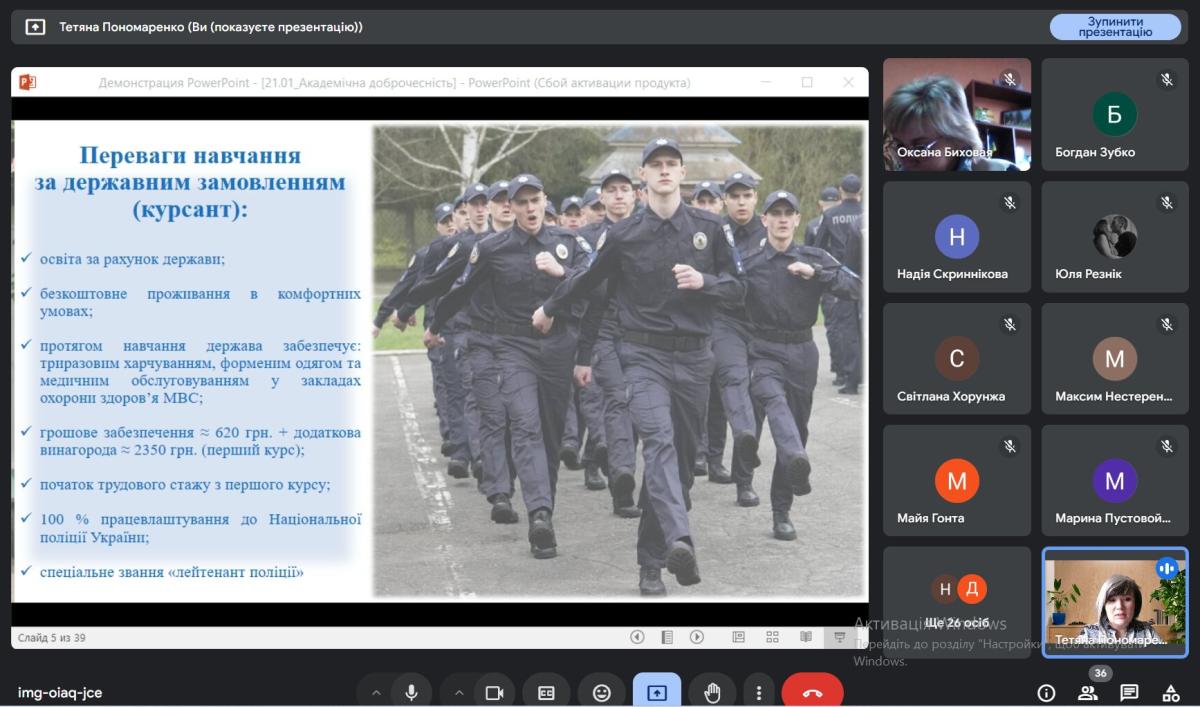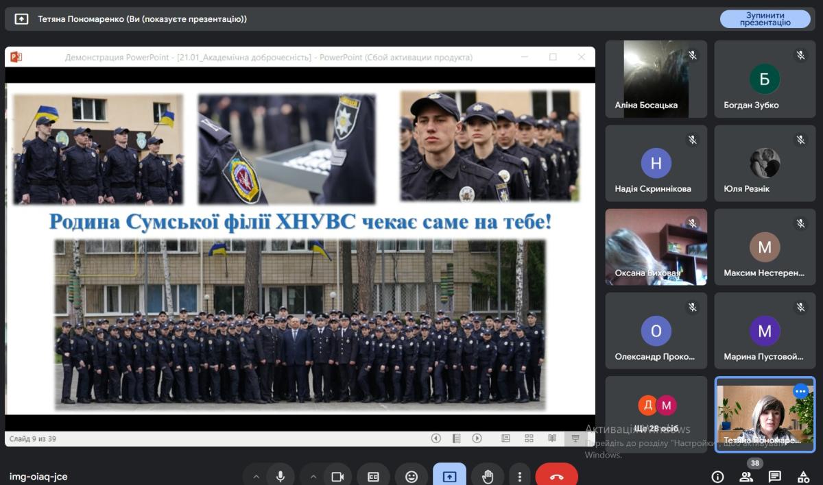 Принагідно здобувачі освіти отримали інформацію про упровадження академічної доброчесності та переваги навчання в Сумській філії ХНУВС, ознайомилися зі спеціальностями, за якими здійснюється підготовка фахівців у філії, процедурою вступу.