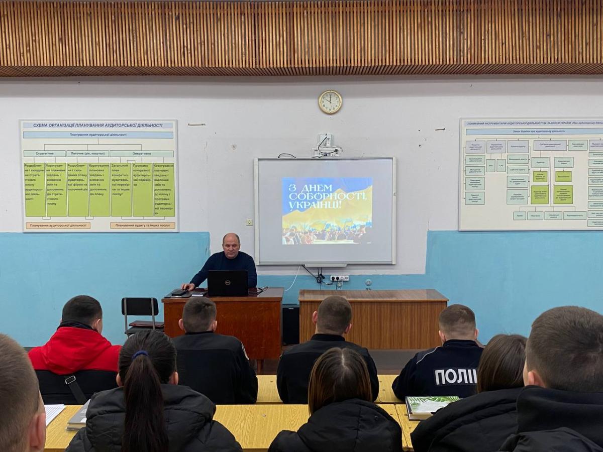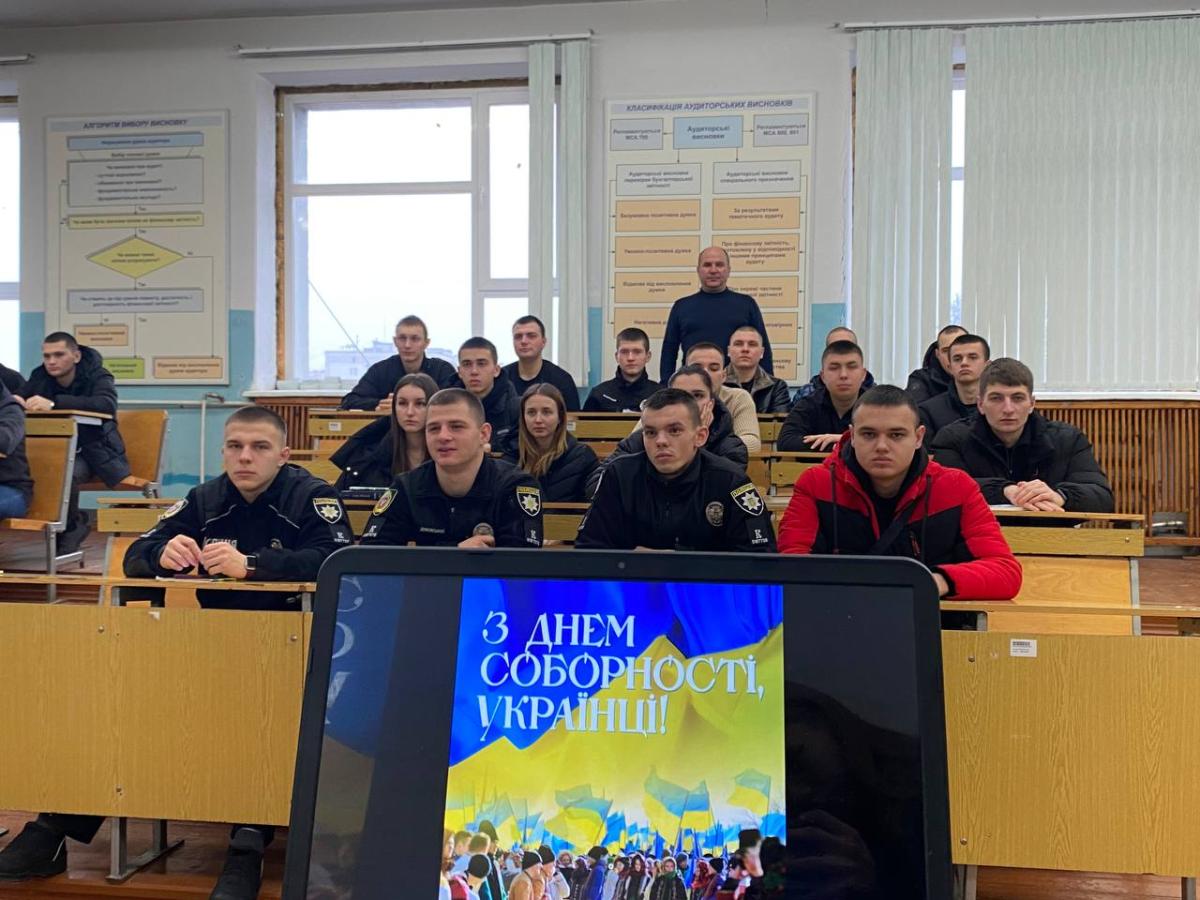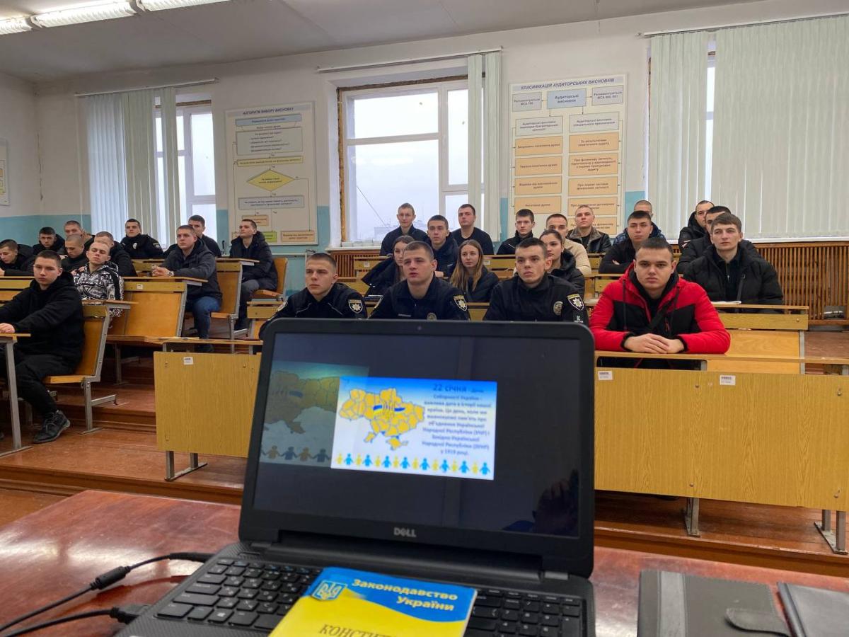 Під час кураторської години куратор наголосив на важливості Акту Злуки (Великої Злуки) 22 січня 1919 року, який символізував об’єднання українських земель у єдину державу. Курсанти обговорили значення соборності як основи національної єдності та громадянської солідарності, розглянули сучасні виклики, які стоять перед українським суспільством, та роль молоді у збереженні суверенітету й територіальної цілісності держави. Особливу увагу було приділено правовим аспектам забезпечення незалежності України.