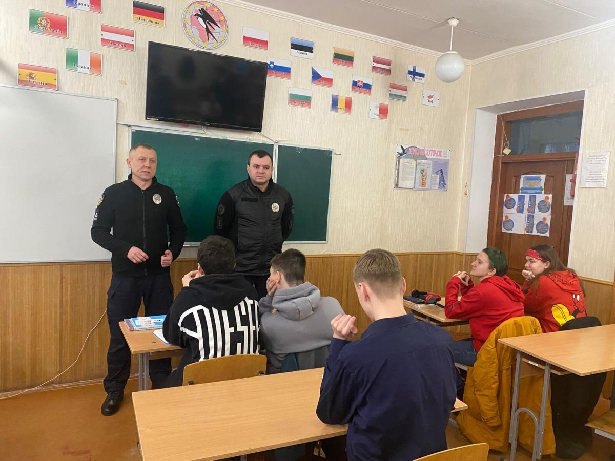 Начальник курсу майор поліції Сергій Товстуха та заступник начальника курсу старший лейтенант поліції Сергій Паніотов завітали до Кременчуцького ліцею №25 «Гуманітарний колегіум» та Кременчуцького ліцею №17 «Вибір» імені М.Г. Неленя.