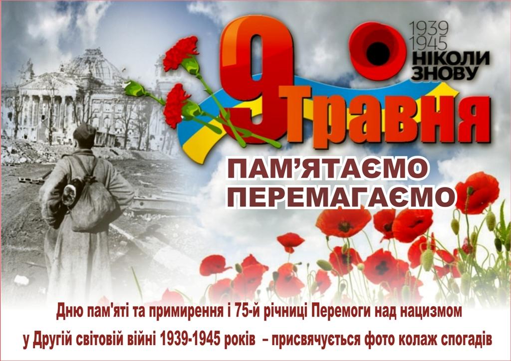 В історії кожної нації, кожного народу є пам’ятні дати, які залишаються назавжди в людській пам’яті. Для українців, такими датами є 8 та 9 травня - День пам'яті та примирення і День Перемоги над нацизмом у Другій світовій війні.