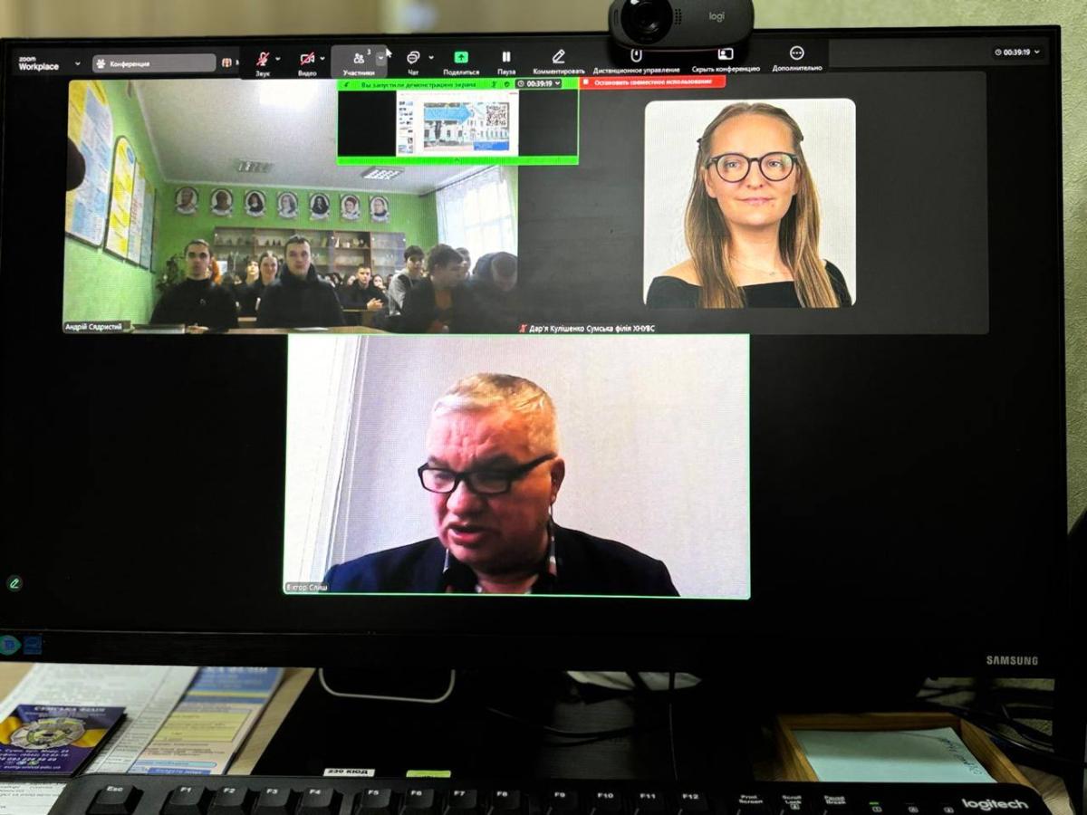 У рамках цієї ініціативи команда фахівців та курсантів університету провела зустріч з учнями Кременчуцького спортивного ліцею імені Івана Максимовича Піддубного Полтавської обласної ради. До заходу долучилися помічник ректора Віктор СЛИШ, провідний фахівець групи документування службової діяльності Дар’я КУЛІШЕНКО, заступник начальника курсу Сергій ПАНІОТОВ, старший викладач кафедри юридичних дисциплін Андрій СЯДРИСТИЙ, а також курсанти другого курсу Нікіта ДІЖЕВСЬКИЙ, Максим ПОНОМАРЕНКО та Софія НЕЧЕПОРЕНКО. Вони розповіли про особливості навчання в університеті та Сумській філії ХНУВС за державним замовленням та за кошти фізичних та юридичних осіб, кар’єрні перспективи та можливості, які відкриває професія правника.