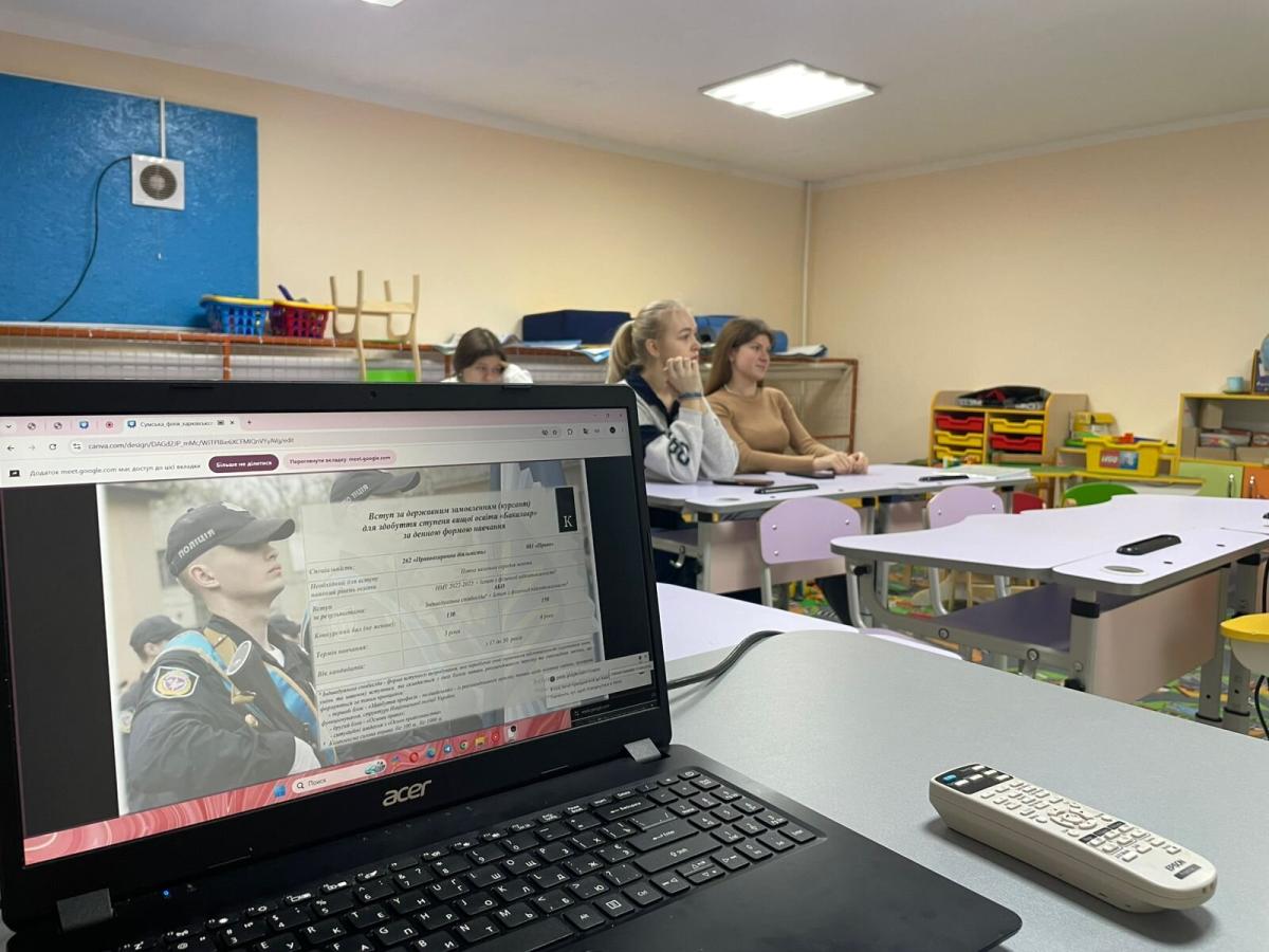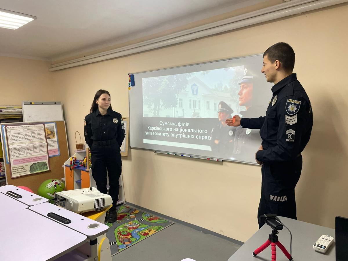 Окрім практичної підготовки, курсанти та студенти також беруть активну участь у профорієнтаційній роботі. Так, вони провели зустріч із учнями Миропільського ліцею Миропільської сільської ради Сумського району Сумської області. Під час заходу здобувачі освіти розповіли школярам про особливості навчання у Сумській філії ХНУВС, переваги професії поліцейського та перспективи кар’єрного зростання.