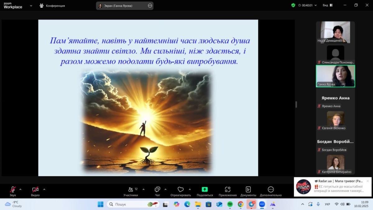 Подібна зустріч і з практичним психологом була надзвичайно важливою для студентів, частина із яких переживають обстріли своїх населених пунктів, змушені через військові події змінювати постійне місце проживання. Рекомендації психолога-практика стануть в нагоді для стабілізації їх власного психологічного стану, упередження психологічного вигорання.