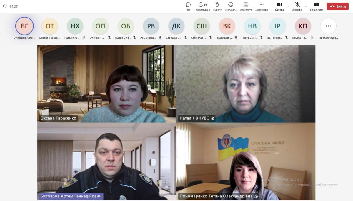Доценти кафедри гуманітарних дисциплін Сумської філії ХНУВС Тетяна Пономаренко та Наталія Зленко наголосили на проблемі комунікації в учнівському середовищі, окреслили основні риси та види булінгу, акцентуючи увагу саме на кібербулінгу як формі цькування у віртуальному просторі.