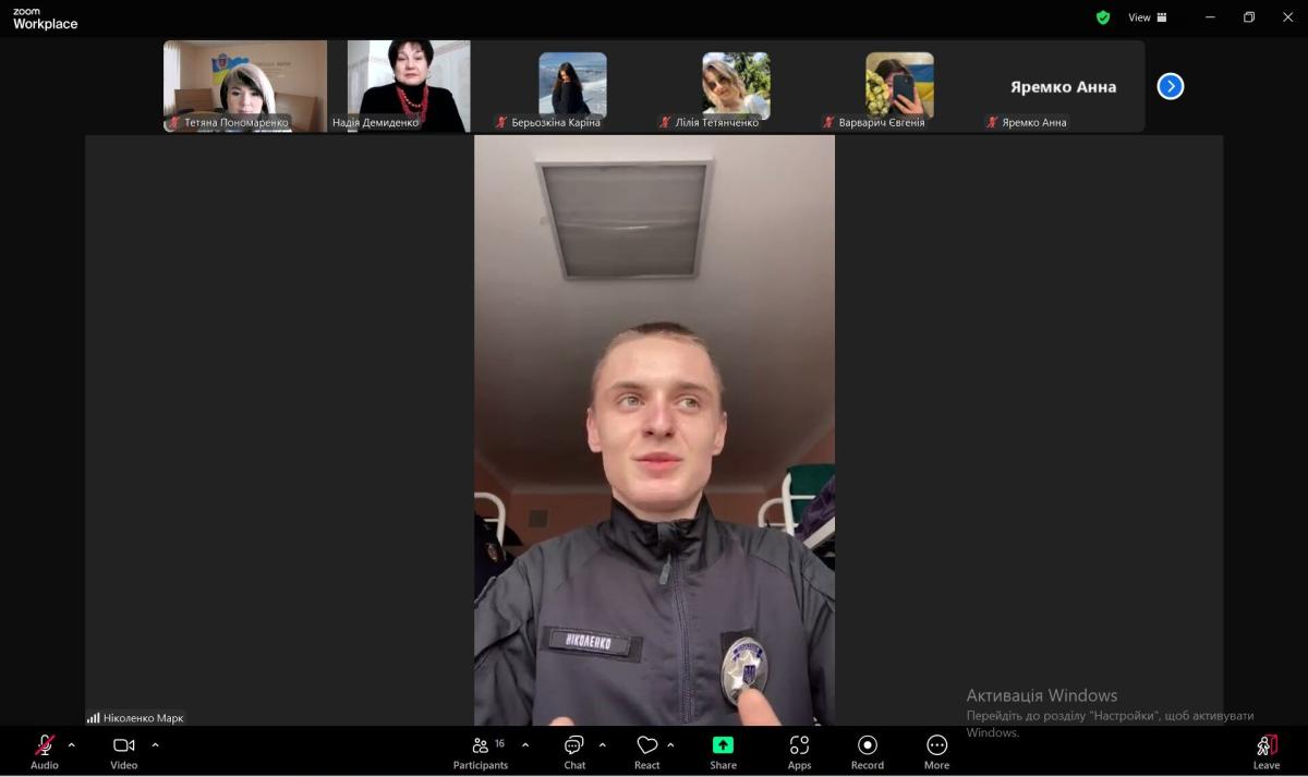 Здобувач вищої освіти 3 курсу спеціальності 262 Правоохоронна діяльність Денис Матвієвський, який є активістом волонтерського руху впродовж всіх років російсько-української війни, відзначений високими державними нагородами, закликав учасників онлайн-зустрічі долучатися щоранку до акції «Хвилина мовчання» у знак вшанування пам’яті полеглих українських героїв.