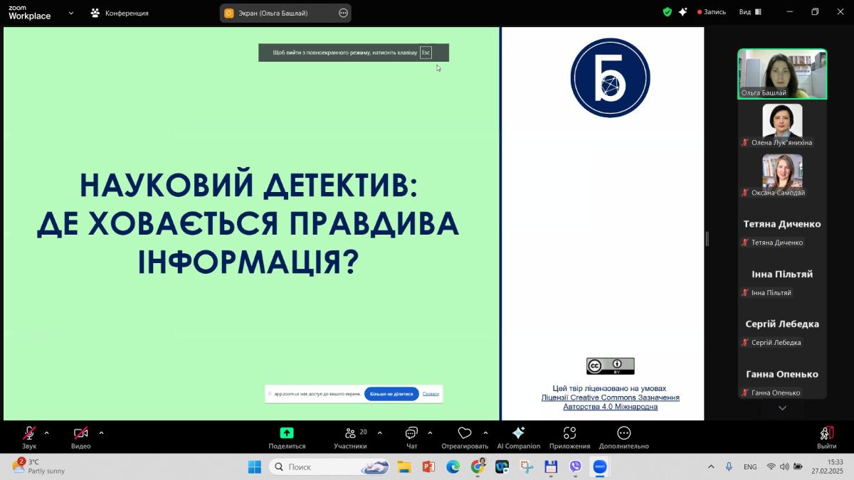 Лекторка, завідувачка сектору інформаційно-аналітичної роботи та електронних ресурсів Філії бібліотеки СумДУ Ольга БАШЛАЙ, розповіла про інформацію як категорію, підходи до її оцінювання з метою отримання саме об’єктивних даних, про підходи до ефективного користування ресурсами бібліотеки і стратегії пошуку інформації науковцем.