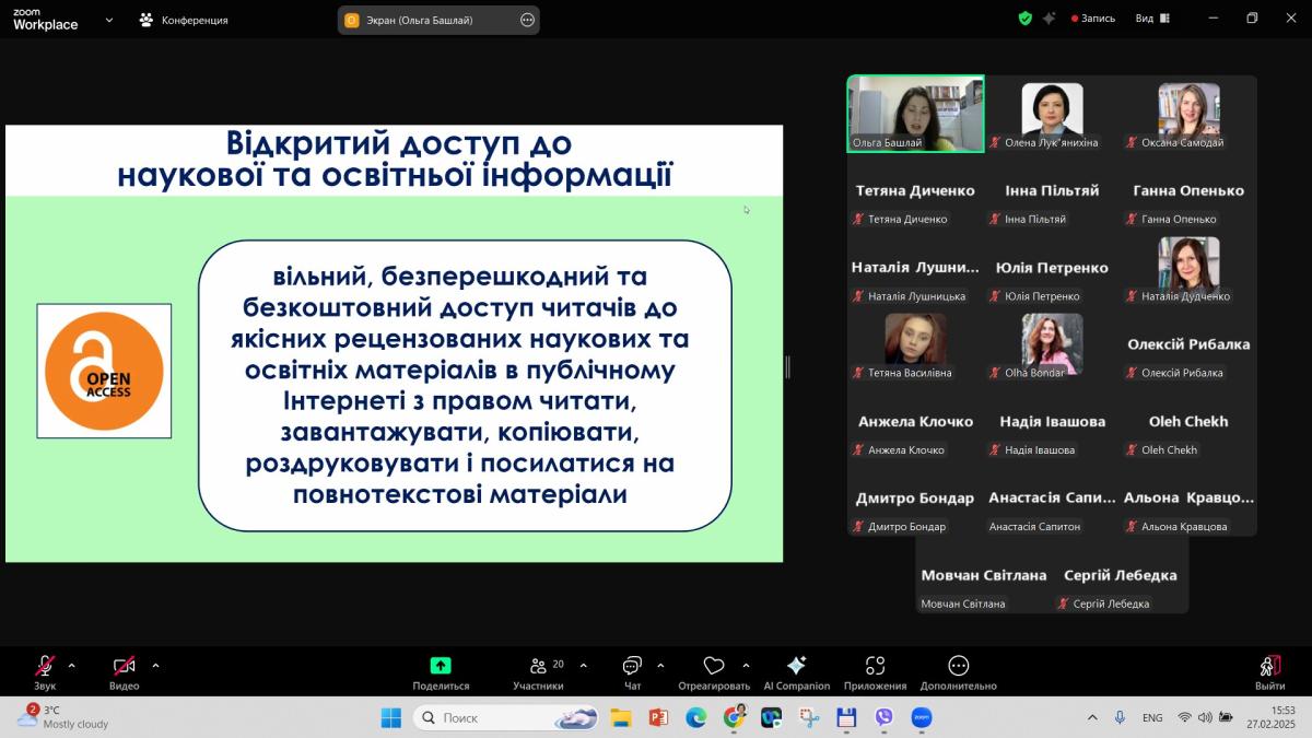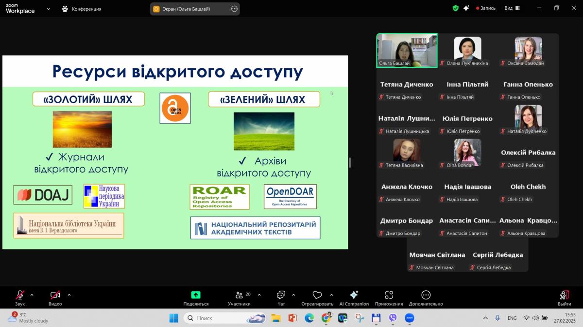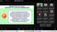 Окремим блоком була розповідь про універсальні та тематичні наукові ресурси та їх переваги, було продемонстровано бази даних відкритого доступу і наголошено на загальній тенденції впровадження у наукову діяльність принципів відкритої науки.