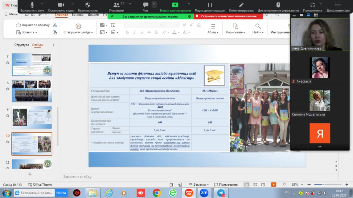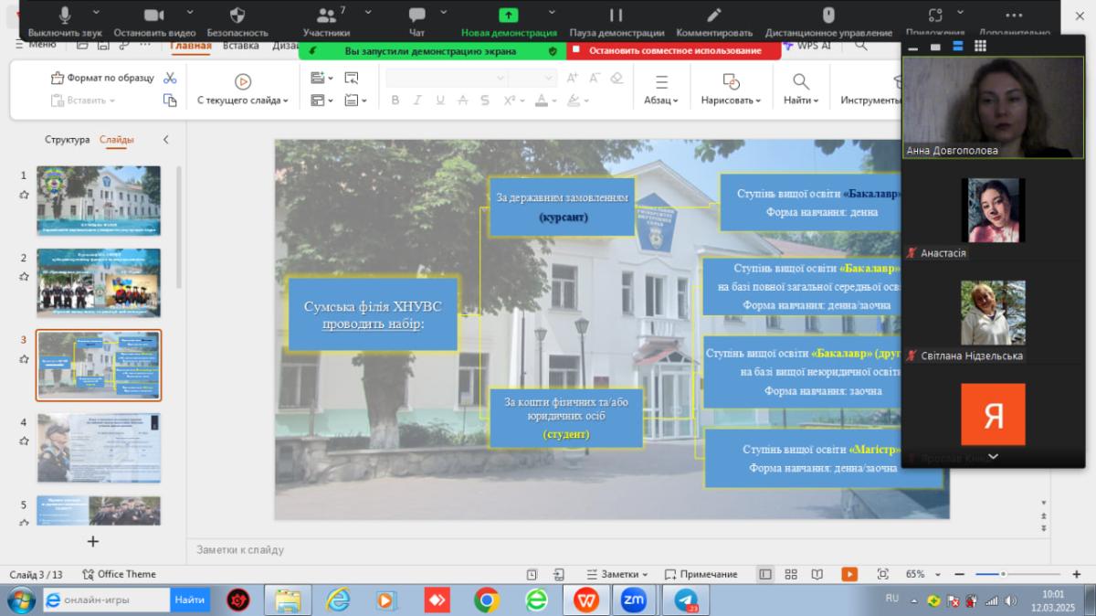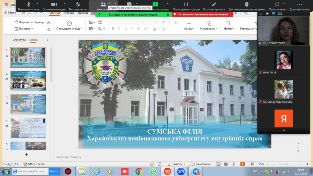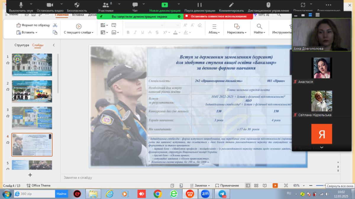 Нещодавно відбулася профорієнтаційна зустріч для випускників Опорного закладу освіти «Попівський заклад загальної середньої освіти І-ІІІ ступенів» Попівської сільської ради Конотопського району Сумської області. До закладу на онлайн зустріч завітала представниця Сумської філії ХНУВС, доцентка кафедри гуманітарних дисциплін Ганна Довгополова, яка розповіла учням про особливості навчання, умови вступу та перспективи кар’єрного зростання у правоохоронній сфері.