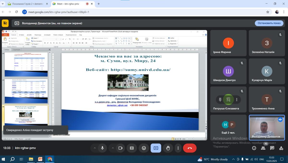 Доцент кафедри соціально-економічних дисциплін Володимир Дементов провів в он-лайн форматі профорієнтаційну зустріч з учнями 11-го класу Глухівської загальноосвітньої школи І-ІІІ ступенів №1 Глухівської міської ради Сумської області.