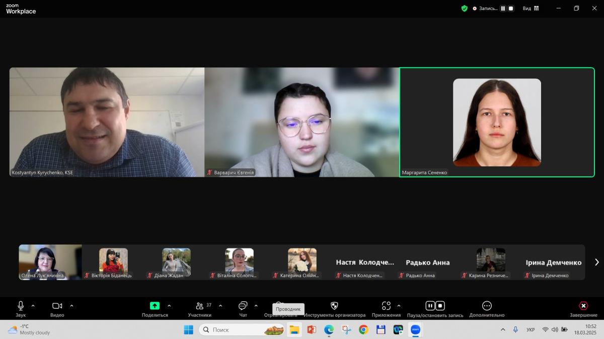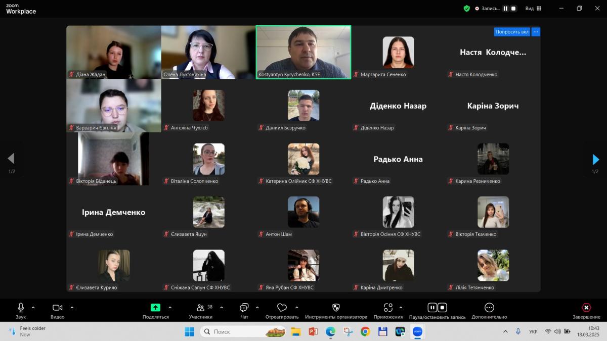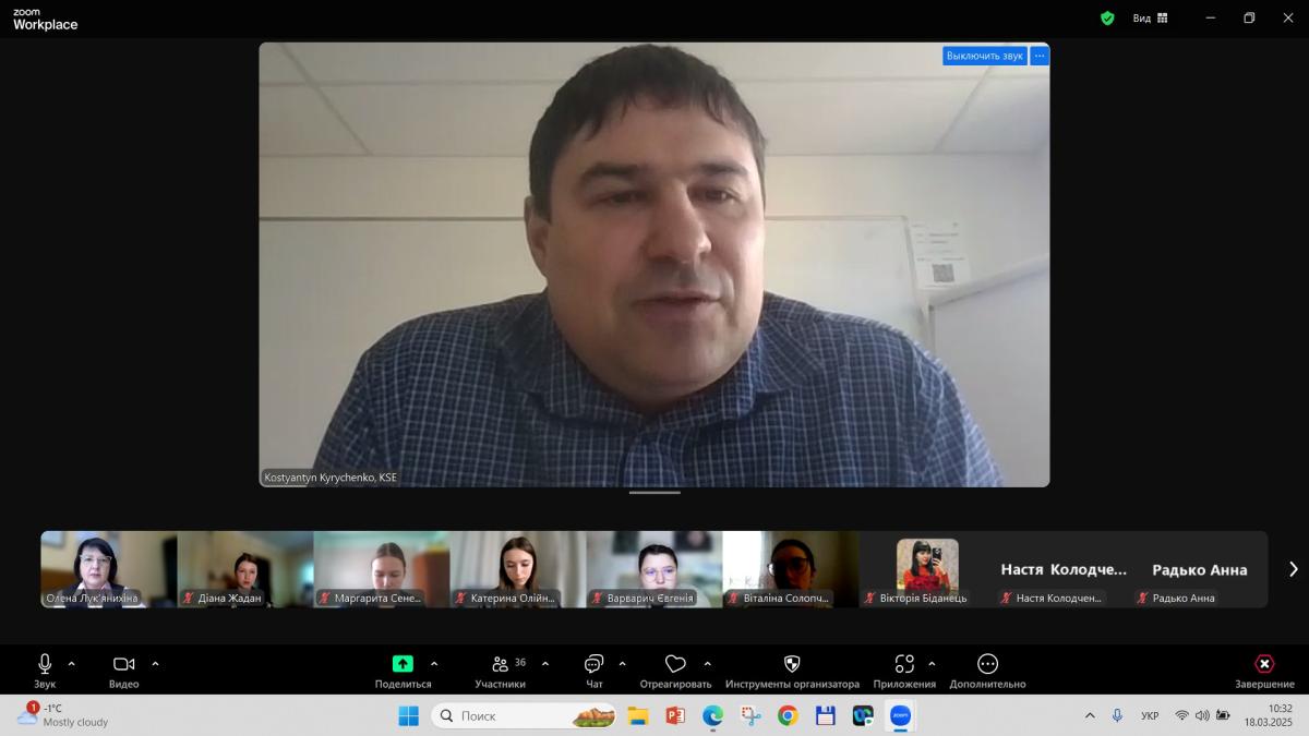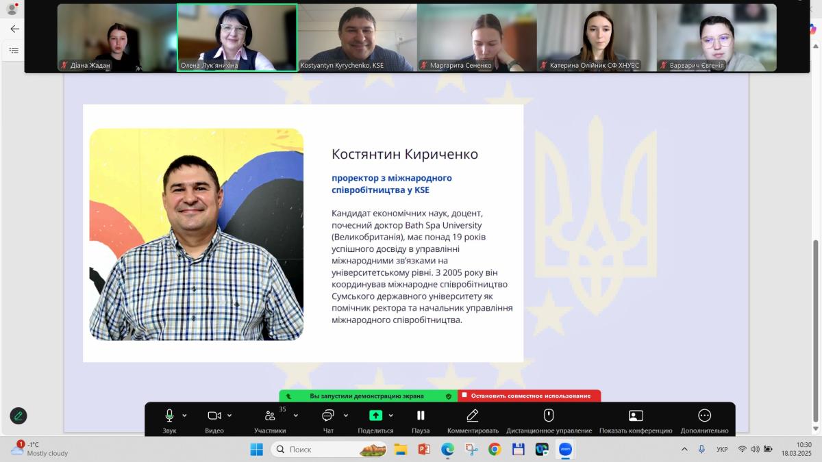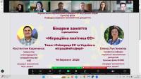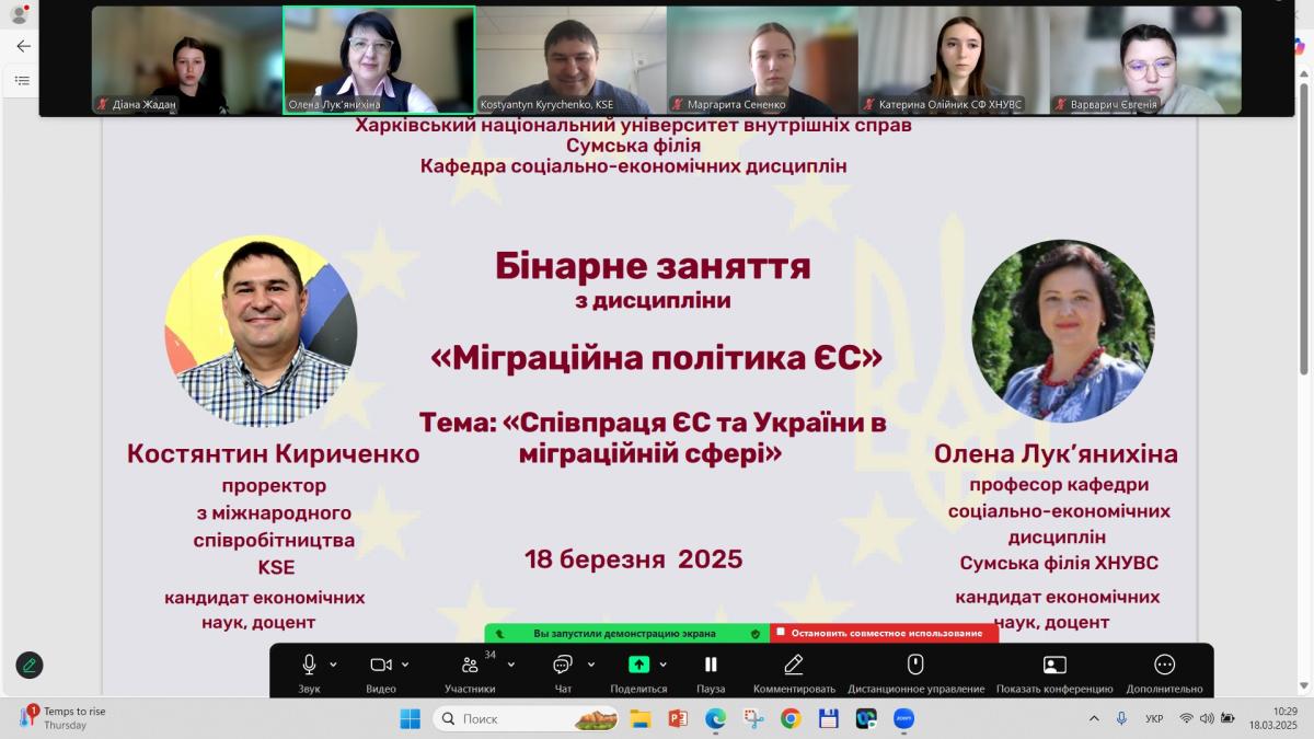 Професорка кафедри соціально-економічних дисциплін Олена Лук’янихіна провела бінарне заняття з дисциплін «Міграційна політика ЄС» для студентів ІI курсу СФдср-23-1,2Пр, за участі Костянтина Кириченка, проректора з міжнародного співробітництва у KSE, кандидата економічних наук, доцента, почесного доктора Bath Spa University (Великобританія).