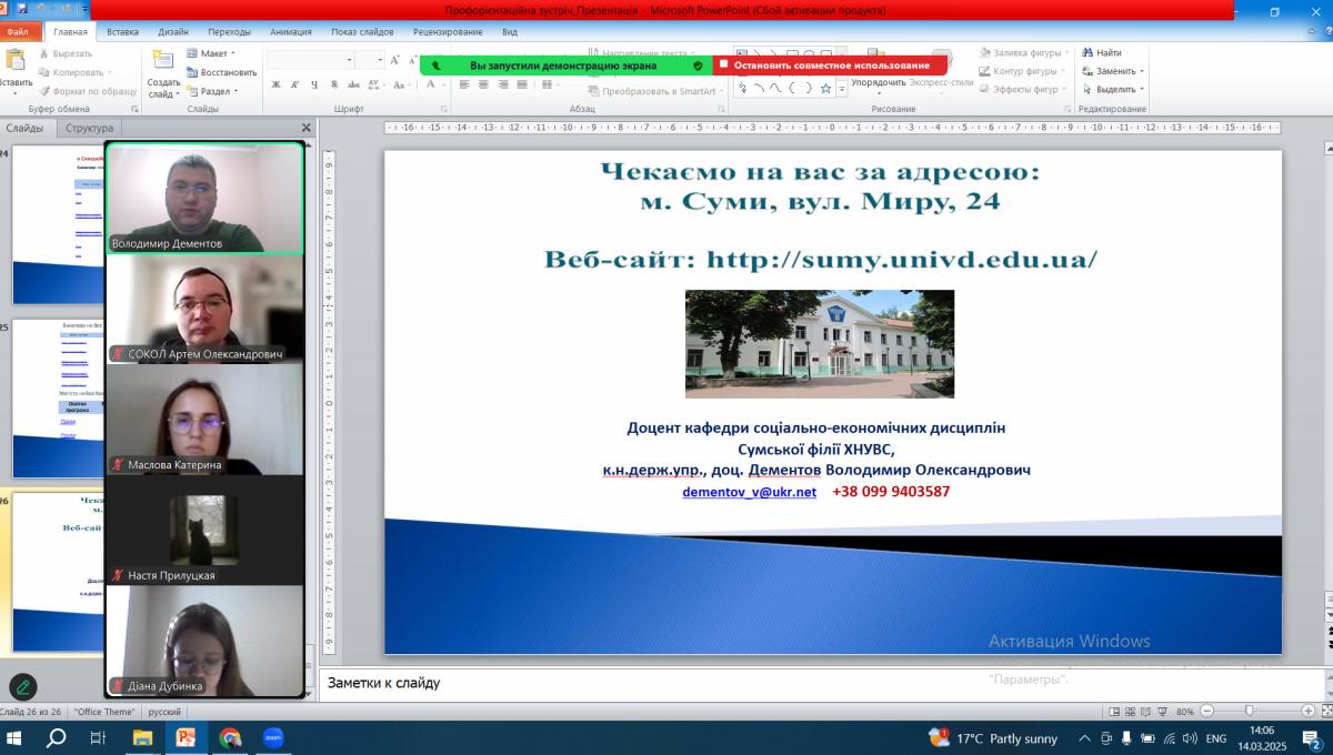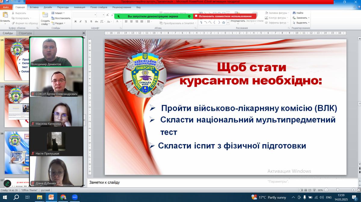 Доцент кафедри соціально-економічних дисциплін Володимир Дементов провів в он-лайн форматі в режимі ЗУМ-конференції профорієнтаційну зустріч з учнями 11-го класу Глухівської загальноосвітньої школи І-ІІІ ступенів №2 Глухівської міської ради Сумської області.