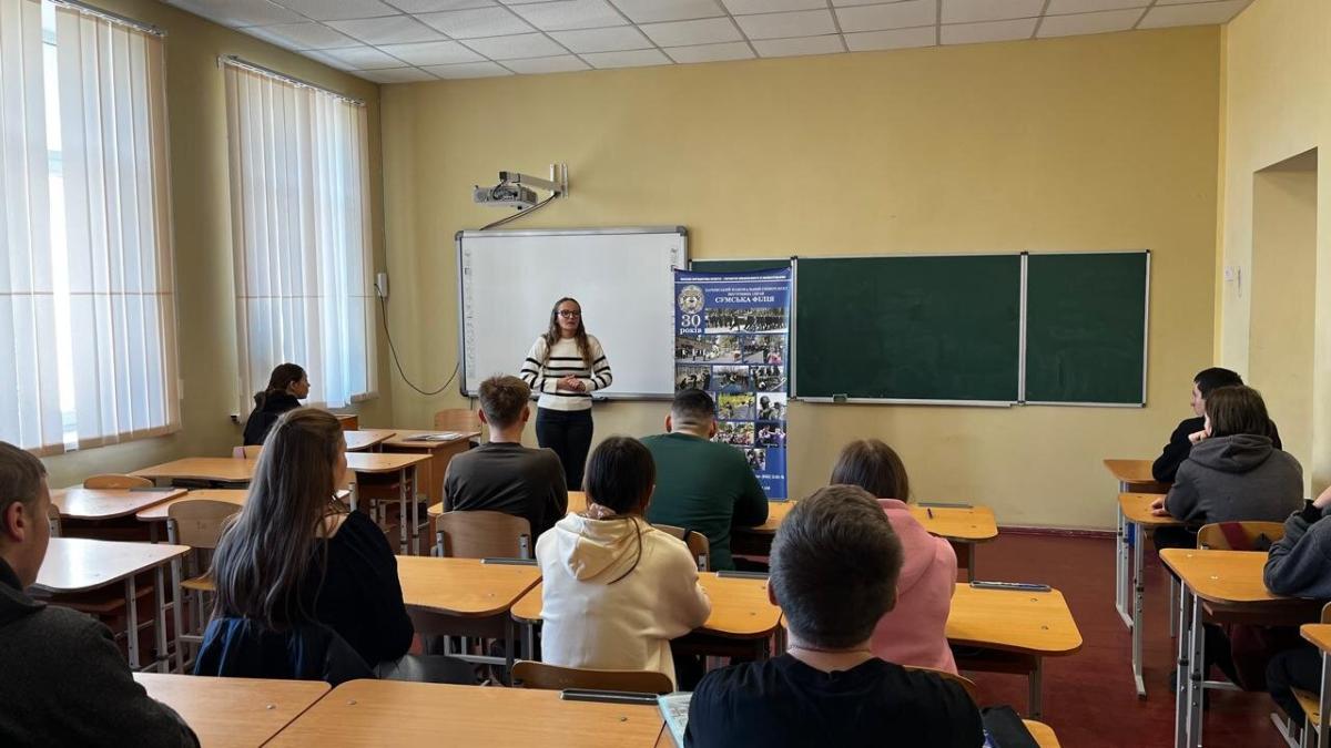 Під час зустрічей учні дізналися про особливості освітнього процесу у Сумській філії ХНУВС, зокрема про спеціальності, які можна здобути, практичну підготовку курсантів та можливості для подальшого кар'єрного зростання.