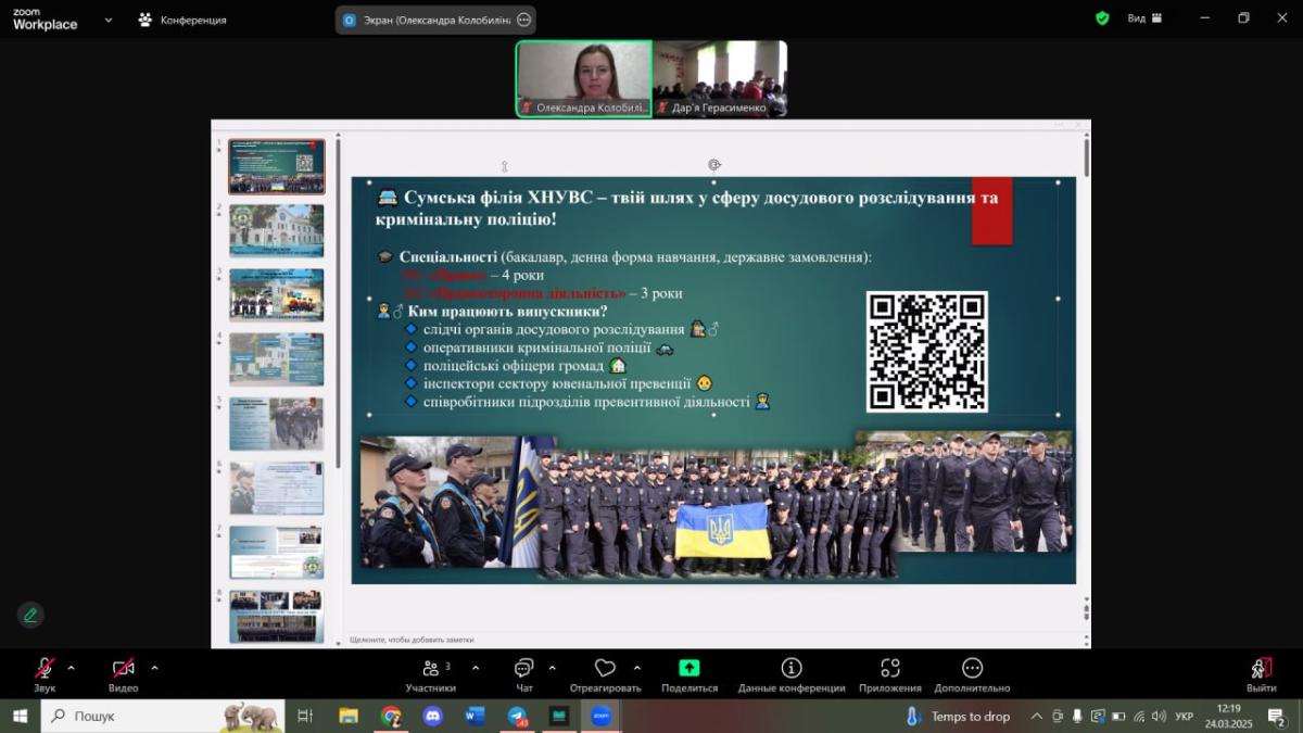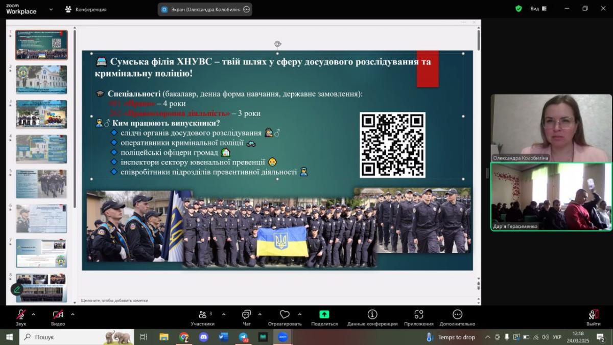 У межах профорієнтаційної роботи відбулася зустріч учнів Лебединських загальноосвітніх шкіл І-ІІІ ступенів № 1 та № 5 Лебединської міської ради Сумської області із викладачем кафедри юридичних дисциплін Колобиліною Олександрою Олегівною.
