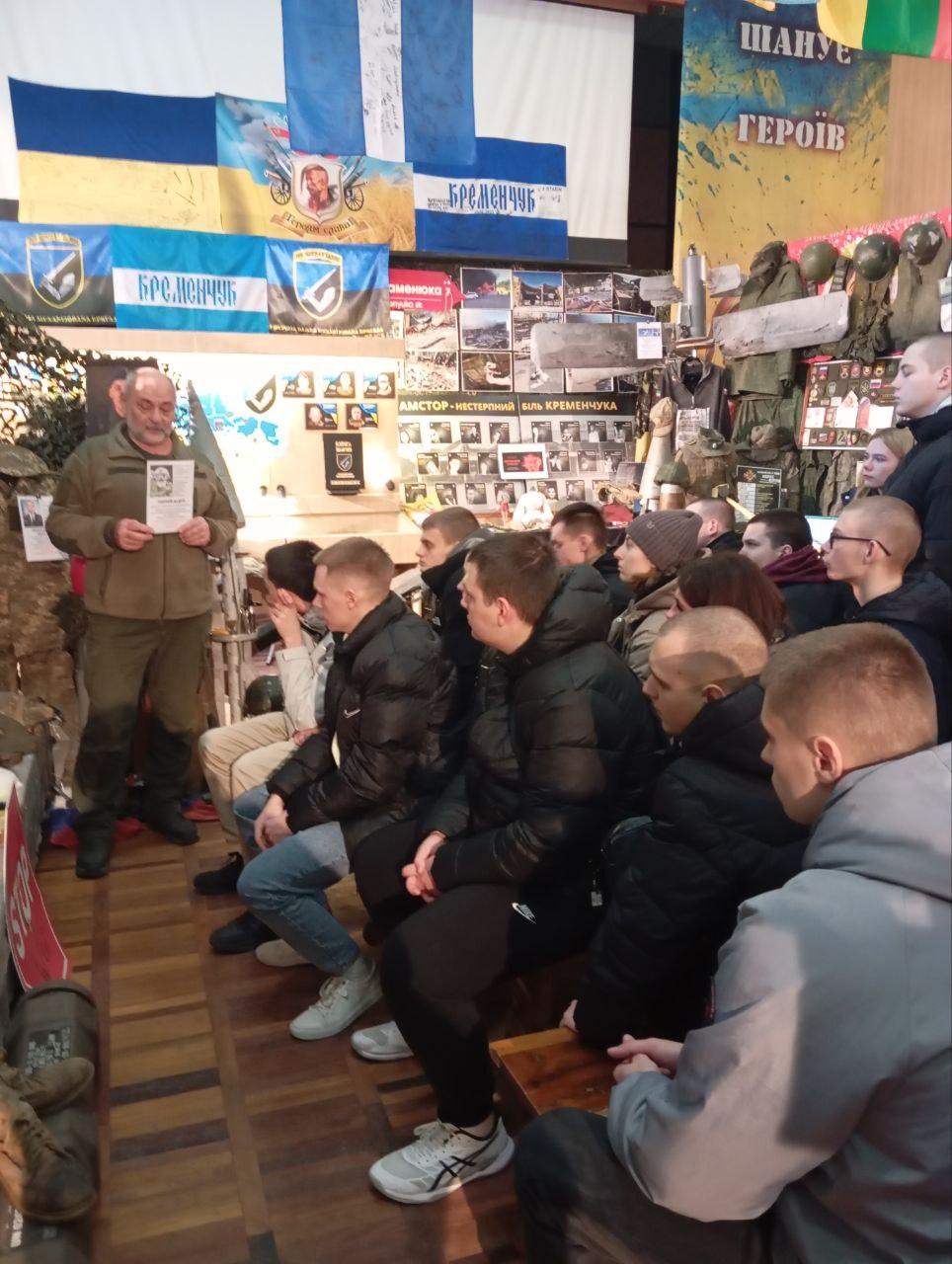 Керівник музею, полковник запасу Володимир ПОЛЯКОВ провів для курсантів змістовну екскурсію, розповівши про героїчні сторінки минулого, боротьбу українського народу проти нацизму, а також про реалії сучасної війни, спричиненої збройною агресією рф. Експозиція музею включає унікальні артефакти, документальні матеріали та особисті речі військових, які стали свідченням боротьби за незалежність.