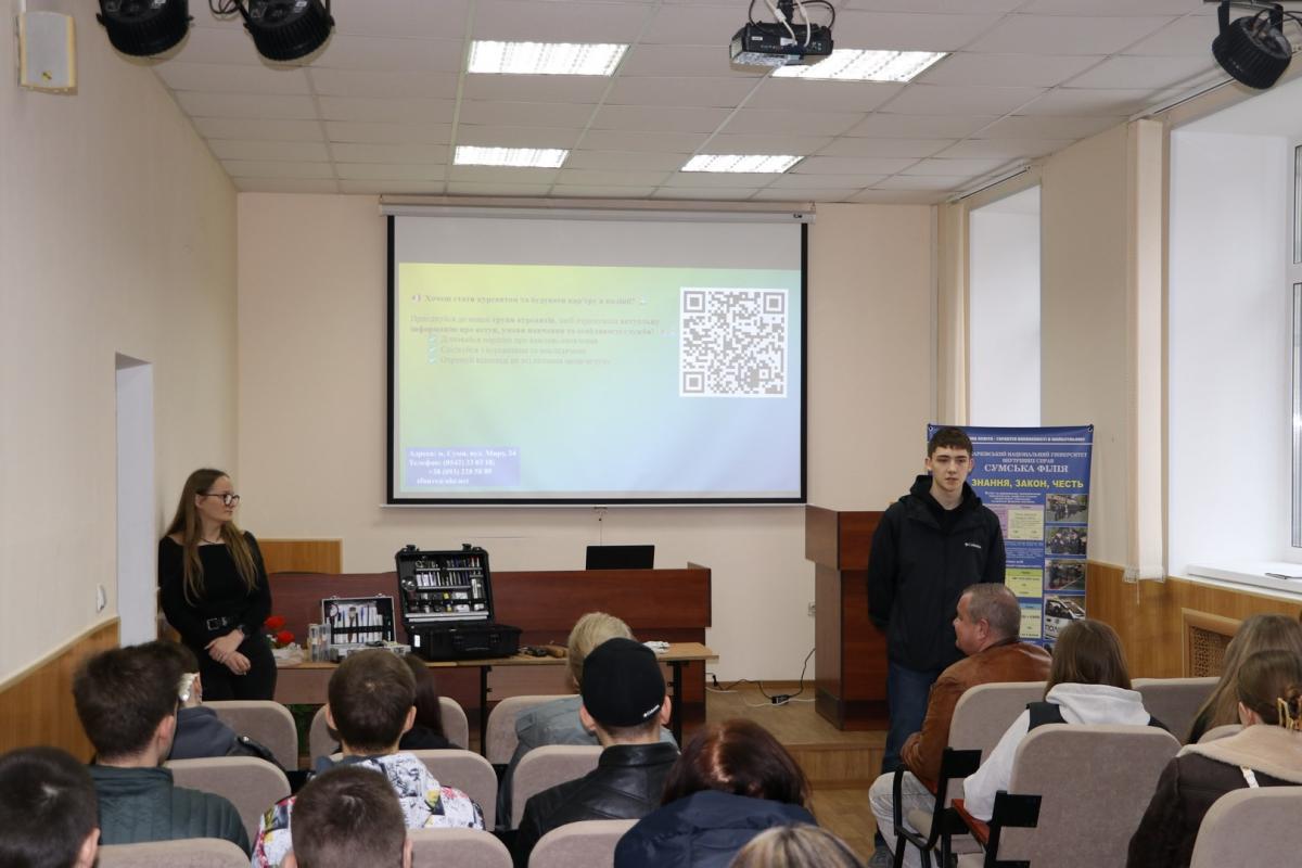 Під час заходу викладачі та представники приймальної комісії детально розповіли про спеціальності, за якими проводиться навчання, переваги здобуття вищої освіти саме в Сумській філії ХНУВС, а також про порядок вступу як за кошти фізичних та юридичних осіб, так і за державним замовленням.