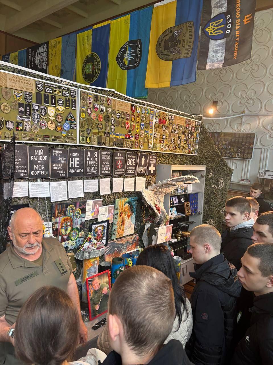 Наші хлопці та дівчата уважно слухали розповідь керівника музею, полковника запасу Володимира Полякова про героїчні сторінки історії кременчужан, ставили йому запитання, ділилися своїми думками та враженнями. Особливо вразила їх історія про військових, які проявили мужність і самопожертву заради нашої країни.