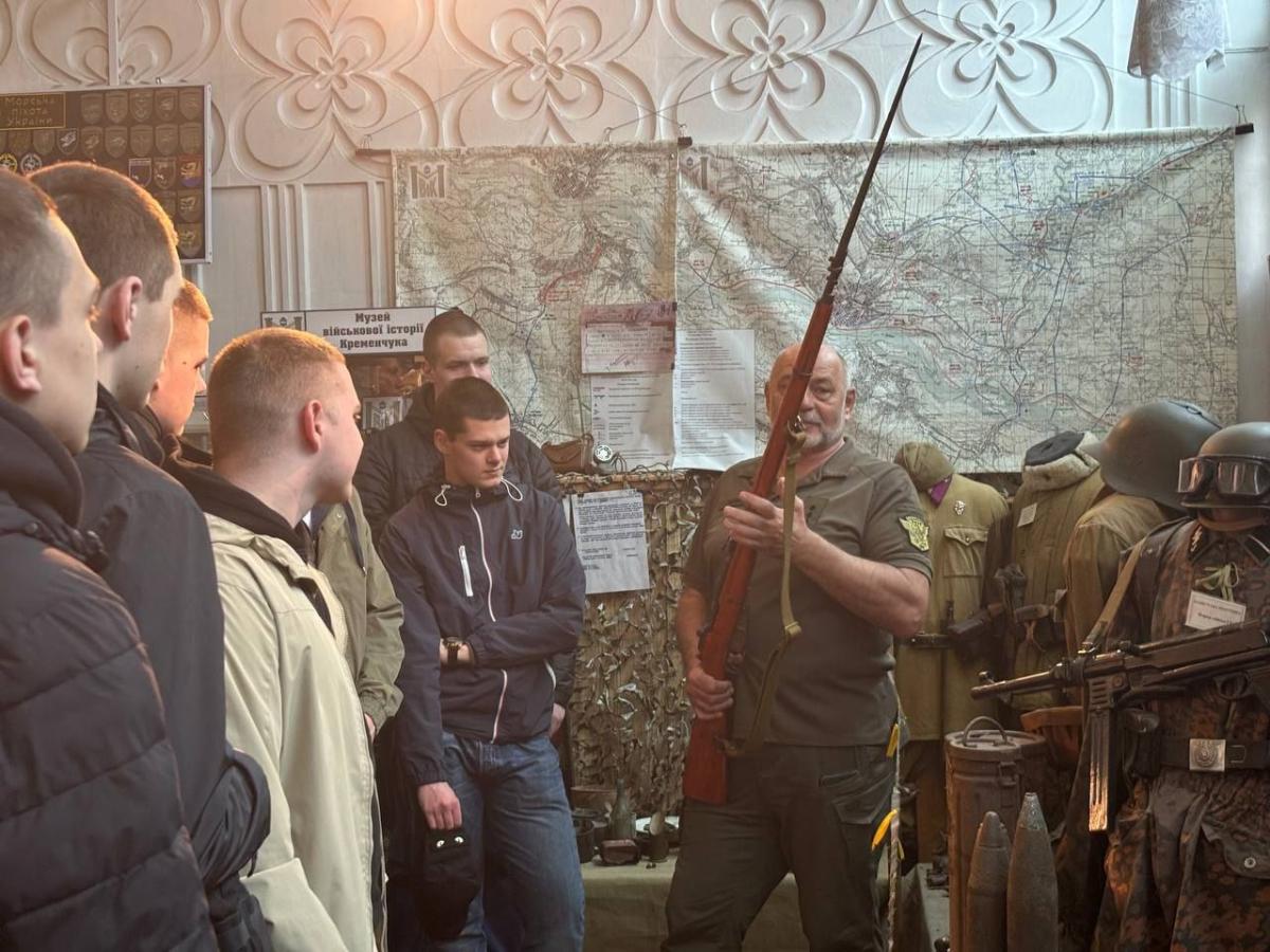Курсанти мали можливість ознайомитися з експозиціями, присвяченими бойовій славі Кременчука, дізнатися про його військову історію - від козацьких часів до сьогодення. Вони переглянули унікальні артефакти: старовинну зброю, військову форму, бойові прапори, нагороди та інші історичні пам’ятки, що дозволило їм глибше усвідомити значущість подвигів тих, хто захищав і продовжує захищати Україну.