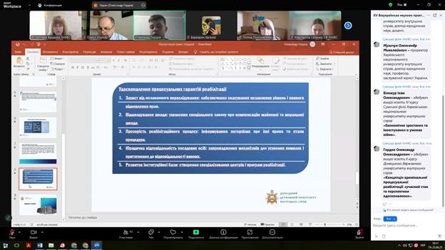 Також з вітальними словами до учасників конференції звернулися перший проректор Харківського національного університету внутрішніх справ, доктор юридичних наук, доцент Віктор Михайлович Василенко та проректор університету, доктор юридичних наук, професор, заслужений юрист України Олександр Миколайович Музичук.
