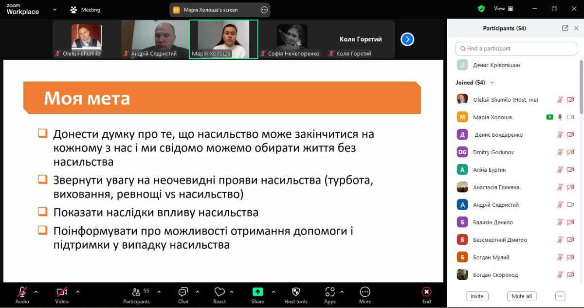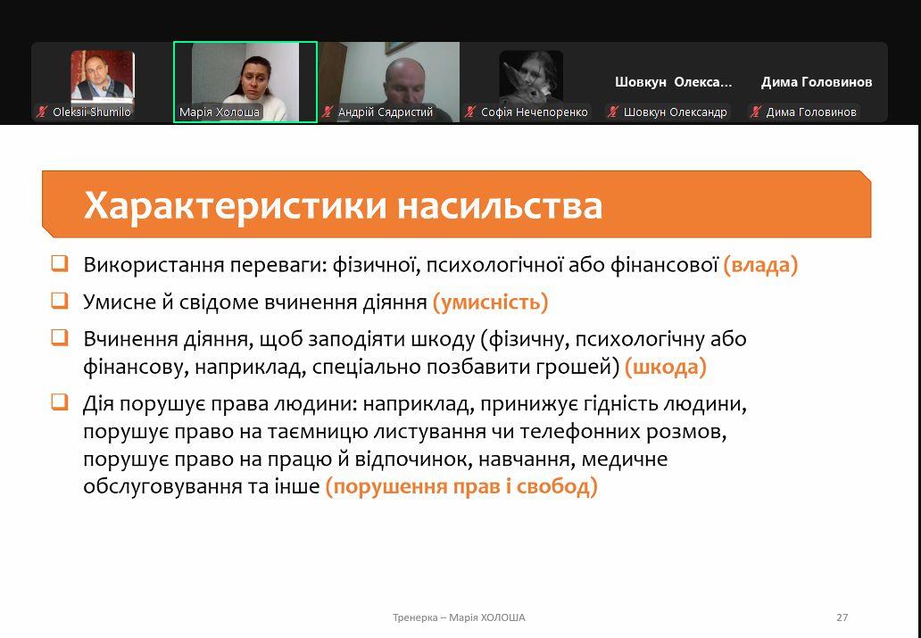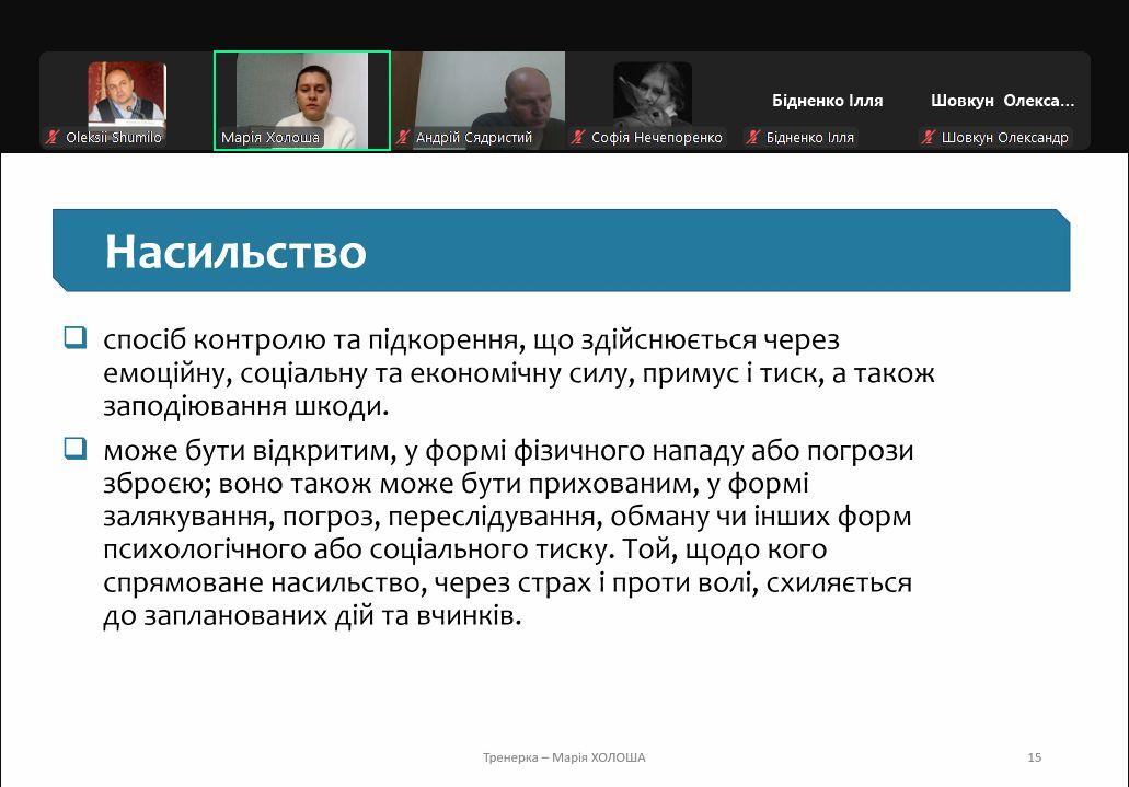 Тренінг засвідчив важливість співпраці між закладами вищої освіти та громадянським суспільством у формуванні правосвідомості та культури недопущення насильства серед молоді.