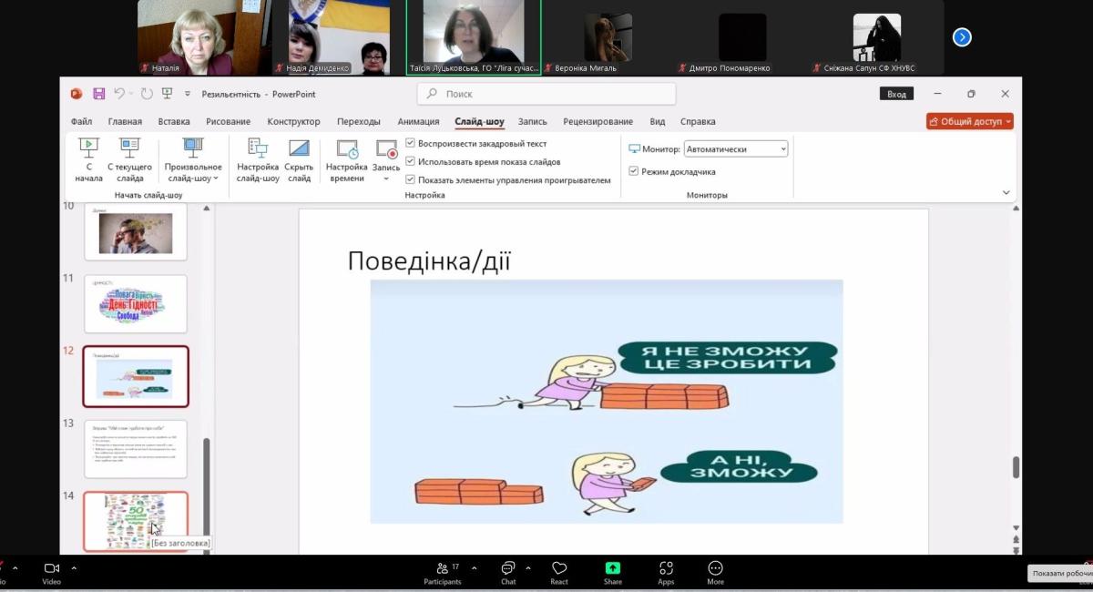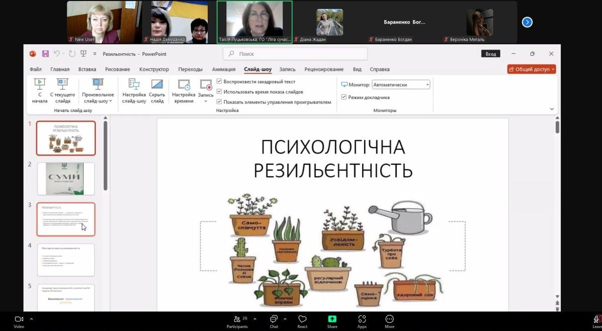 Таїсія Луцьковська поділилася практичними рекомендаціями щодо розвитку психологічної резильєнтності – важливого внутрішнього ресурсу для кожної особистості (техніки дихання, усвідомленості (mindfulness), позитивного мислення).