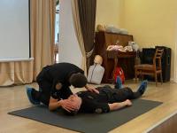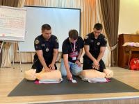 Практична частина складалася з невідкладних дій рятувальників щодо зупинки кровотечі та проведення серцево-легеневої реанімації, використання підручних матеріалів для зупинки критичної та вузлової кровотечі у постраждалих. Кожен з учасників мав можливість відпрацювати алгоритм дій з постраждалими на імітованому місці пригоди у різних ситуаціях критичних станів.