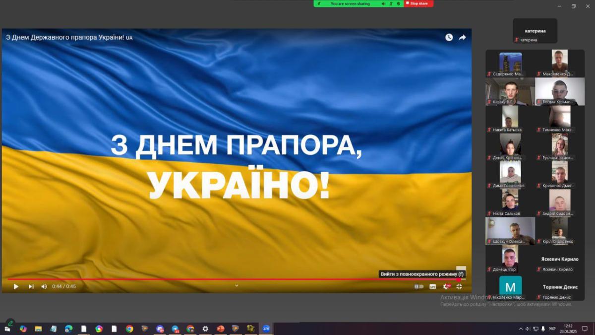 До Дня Державного Прапора України здобувачі Сумської філії провели онлайн захід, під час якого учасники обговорили значення національного символу та його роль у становленні державності. Також було організовано перегляд відеоматеріалів, присвячених історії та сучасному значенню синьо-жовтого стяга. Захід сприяв формуванню патріотичних цінностей та вихованню поваги до державних символів. Учасники мали можливість поділитися власними думками та враженнями, що зробило зустріч більш змістовною й інтерактивною.