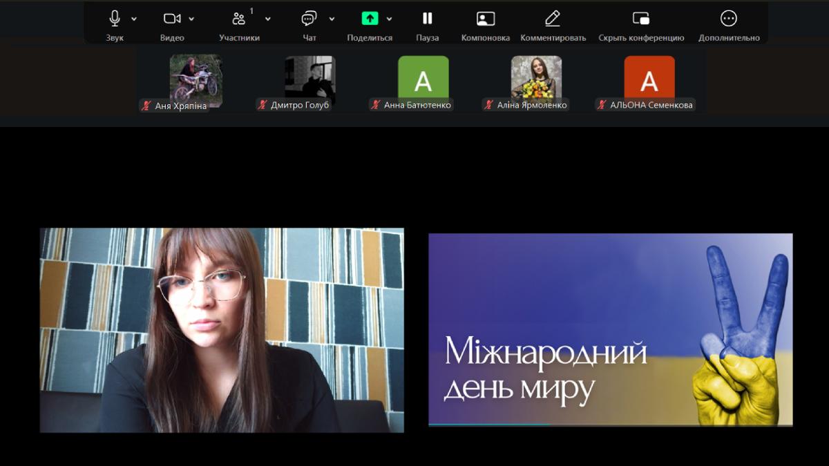 У межах виховної роботи зі студентами групи СФдср-25-1Пд відбулося тематичне засідання під керівництвом куратора Інни Шалової, приурочене до Міжнародного дня миру. Захід проходив у форматі студентських читань есе на тему «Ціна війни – життя».