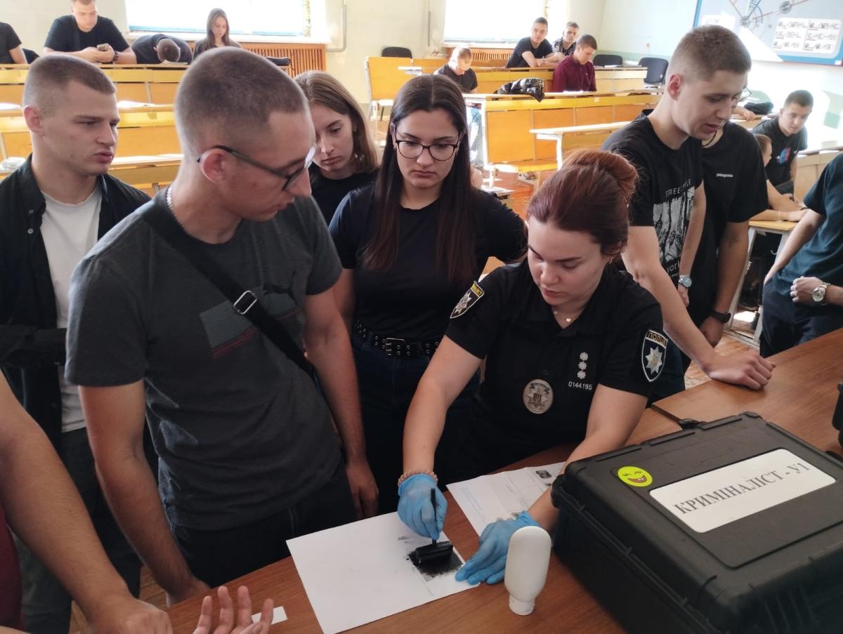 У Сумській філії ХНУВС відбулося бінарне заняття з дисципліни «Криміналістика», яке провела викладач кафедри юридичних дисциплін Євгенія Манько спільно зі спеціалістами-криміналістами Кременчуцького РУП ГУНП у Полтавській області.