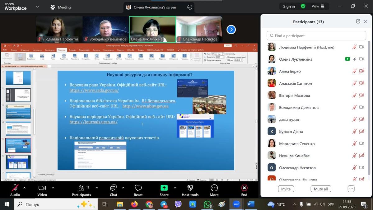 Керівник гуртка також наголосила, що здобувачі повинні дотримуватись принципів академічної доброчесності, зокрема при використанні штучного інтелекту. Присутні на засіданні наукові керівники (професор кафедри Виганяйло Світлана Миколаївна, доцент кафедри Дементов Володимир Олександрович і старший викладач Нєсвєтов Олександр Олександрович) і здобувачі погодились із важливістю популяризації принципів академічної етики серед науково-педагогічного складу, студентів і курсантів власним прикладом.